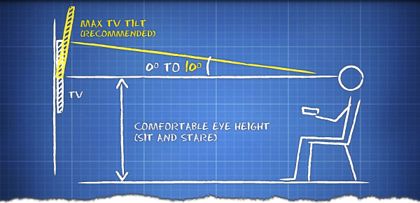 Jos katselee tv:tä makuultaan, ihanteellinen korkeus on eri kuin istuma-asennossa, sama koskee makuuhuoneen televisiota. Silloin pitää ottaa huomioon nojailukulma!