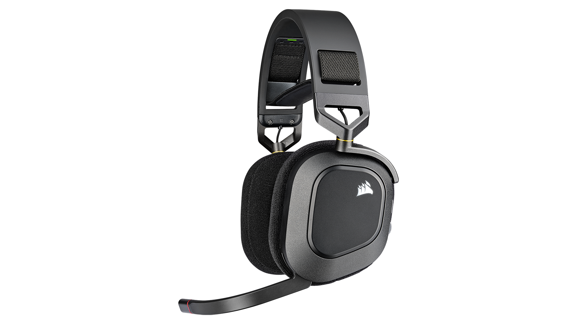 Mikrofoni on käännettävän varren päässä. Virtanapilla onnistuu myös vaihto langattoman ja langallisen toiminnon välillä, ja lisäksi kuulokkeissa on vain volyyminsäätö. Corsair HS80 on vankkarakenteinen olematta kuitenkaan kömpelö, ja sen vahvat metallikiinnikkeet pitävät kupit luotettavasti paikoillaan.