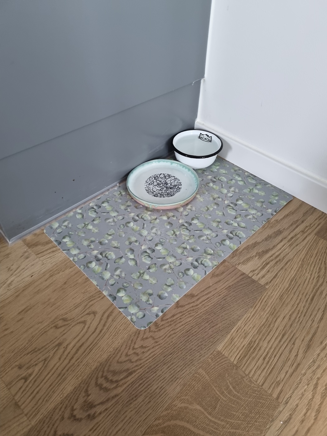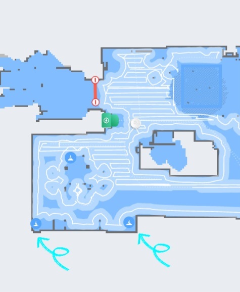 Ensimmäisen siivouksen jälkeen tarkistan sovelluksesta kartan ja huomaan Roopen merkinneen kissojen kupit esteiksi. Seuraavalla kerralla Roope väistääkin kuppeja siististi ja jättää tuolinjalatkin rauhaan. Onpa fiksu!