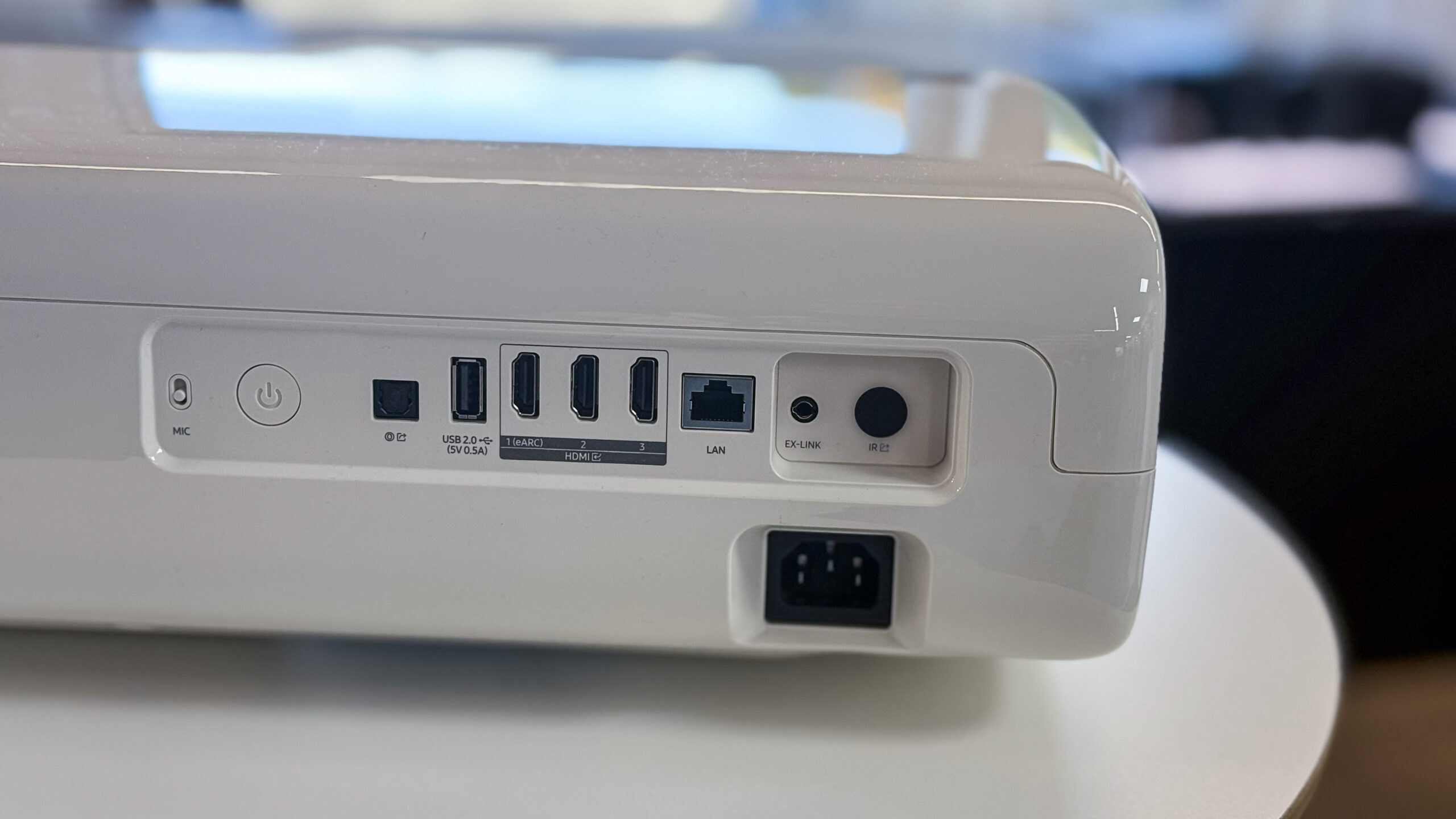 Jos kaipaa enemmän ääntä, voi toki yhdistää soundbarin HDMI eARC:n kautta. Toinen vaihtoehto on yhdistää langattomat kaiuttimet (kuten saman valmistajan designkaiutin Music Framen) suoraan projektorin smart-asetusten kautta. Se olisi kieltämättä tyylikäs kotiteatteriratkaisu.