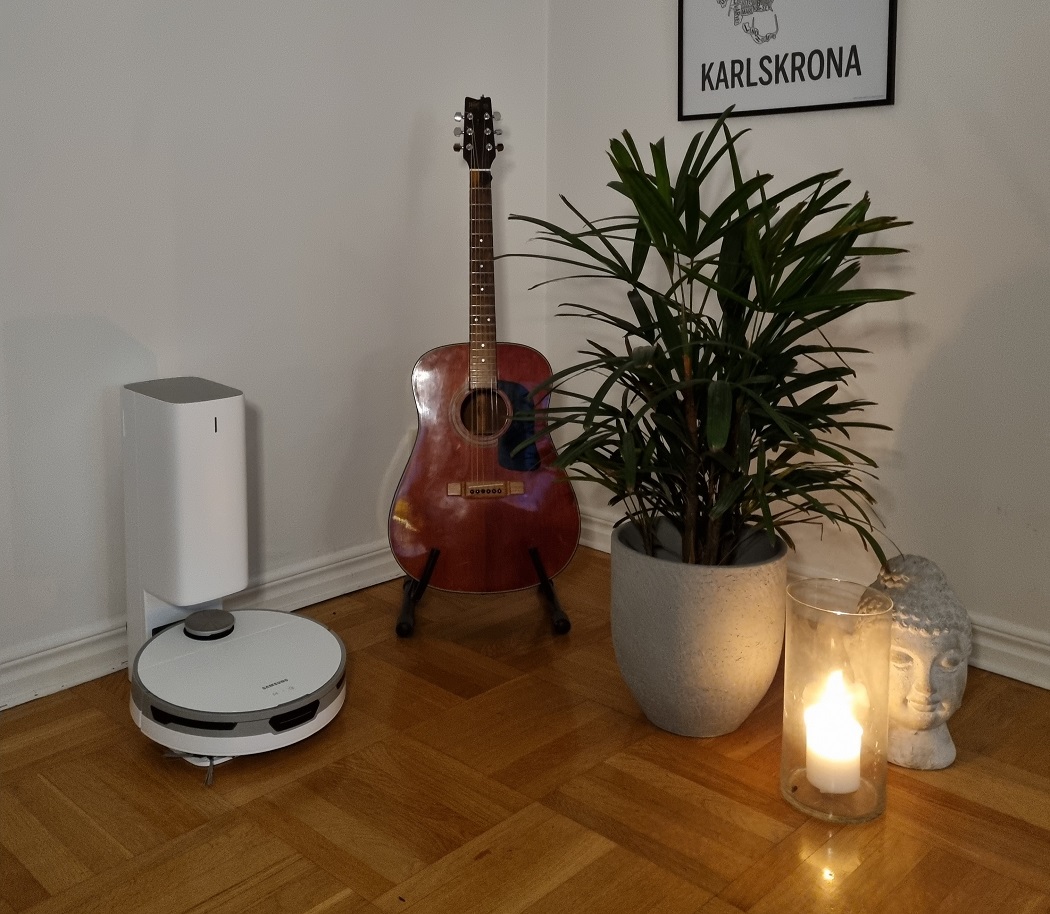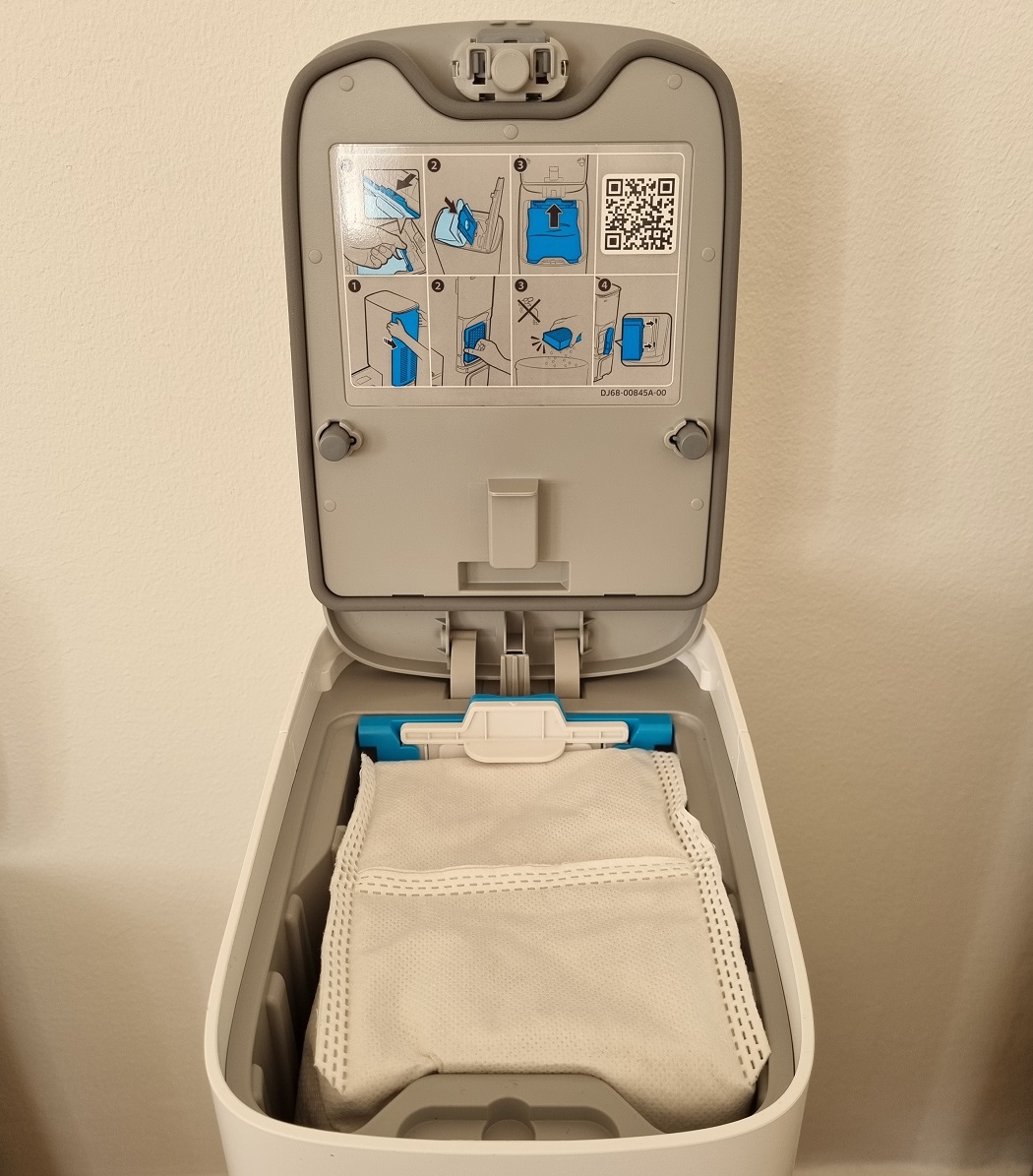 Itsetyhjentyvän imurin kanssa elämä on aika huoletonta. Itse tykkään säilyttää useimmat laitteet niin, ettei niitä tarvitse katsella, mutta Magdan kanssa se on vaikeaa. Yli 50 cm korkeaa ja jostain syystä leveyttään syvempää latausasemaa on vaikea olla huomaamatta, sillä se työntyy seinän vierestä tarpeettoman paljon näkyville.