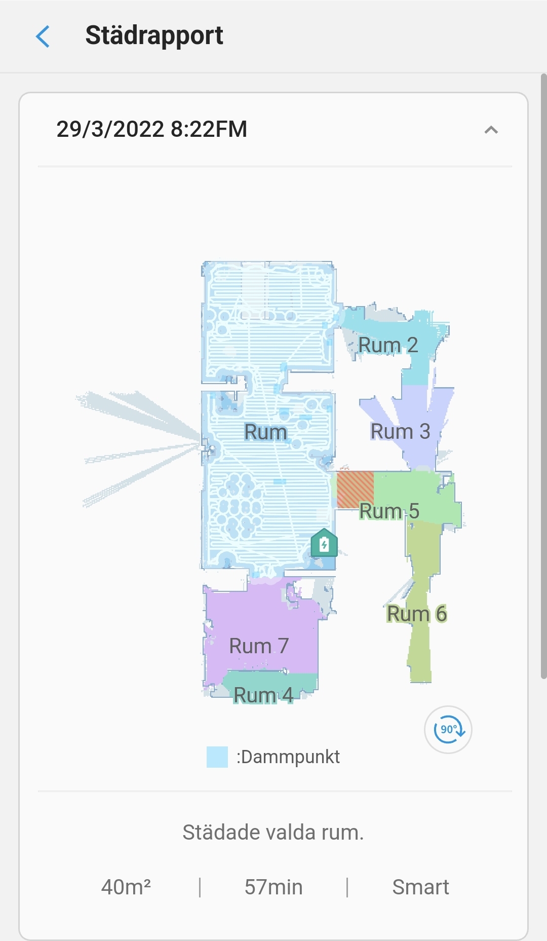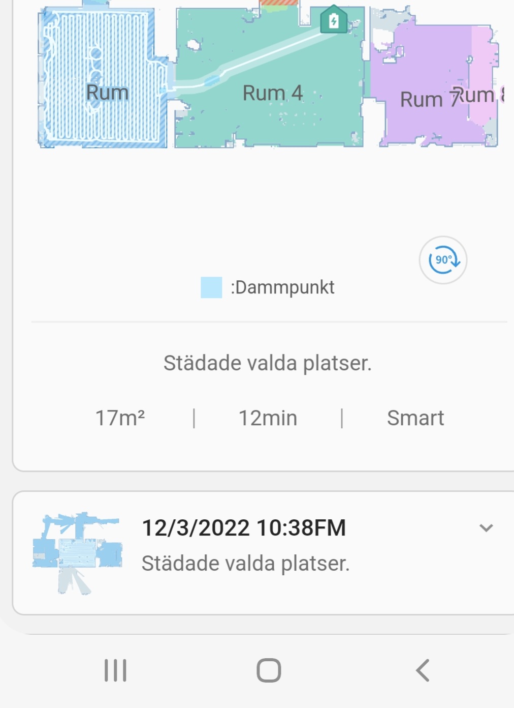 Samsung Jet Bot+:n voi laittaa siivoamaan myös yksittäisiä huoneita. Sovelluksesta valitaan huone ja painetaan start-nappia, jonka jälkeen imuri piippaa ja lähtee matkaan.