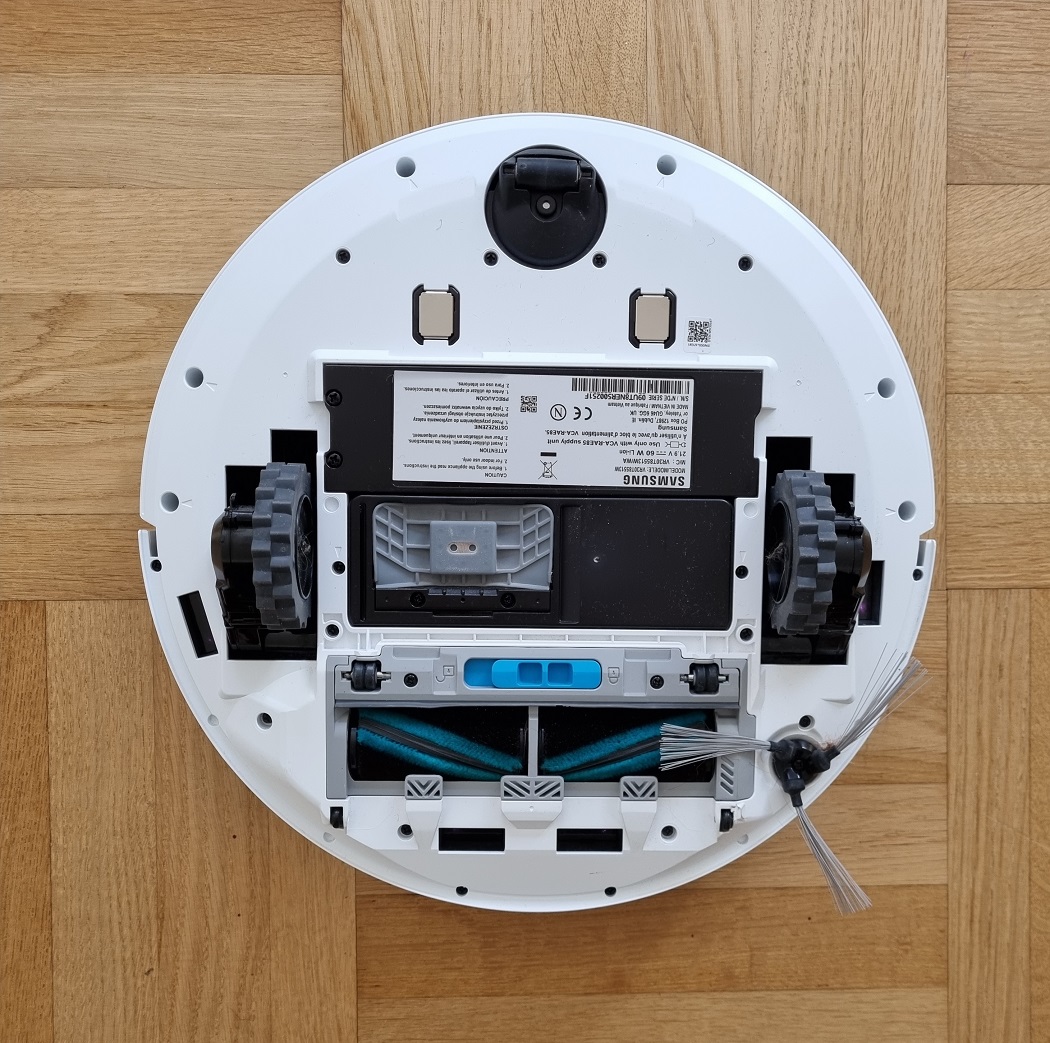Paketista paljastuu Jet Bot+, latausasema, moottorin eteen tuleva ekstrasuodatin, ylimääräinen pölypussi, pyörivä harjas sekä rajausmerkkaaja. Samsung Jet Bot+:n voi jakaa toiminta-alueisiin, mutta esimerkiksi portaat voi vielä varmuuden vuoksi rajata manuaalisesti.