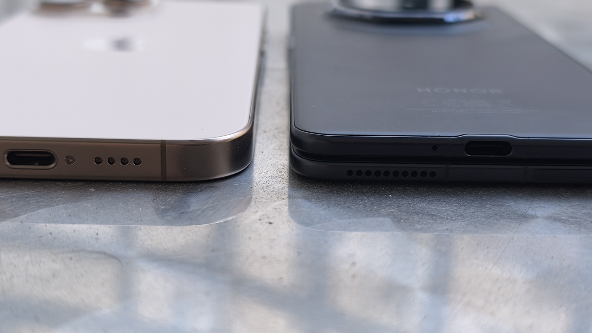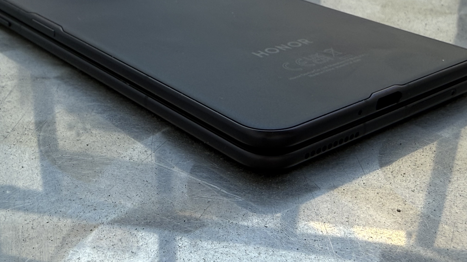 Kun puhelimen taittaa, ei näyttöjen väliin mahdu riisipaperiakaan. Sekä etu- että takanäyttöä suojaa merkin itsensä kehittämä vahvistettu lasi, jota Honor kutsuu nimellä NanoCrystal Shield. Sen pitäisi kestää pudotus kahdesta metristä, kun Gorilla Glass Victus 2 selviää vain metrin pudotuksesta. Koska Honor haluaa puhelimensa testin jälkeen takaisin, en iljennyt pudotella Magic V3:a. Puhelimella on myös IPX8-suojaus, eli se on vedenkestävä mutta taittuvuuden vuoksi sitä ei ole voitu suojata pölyltä.