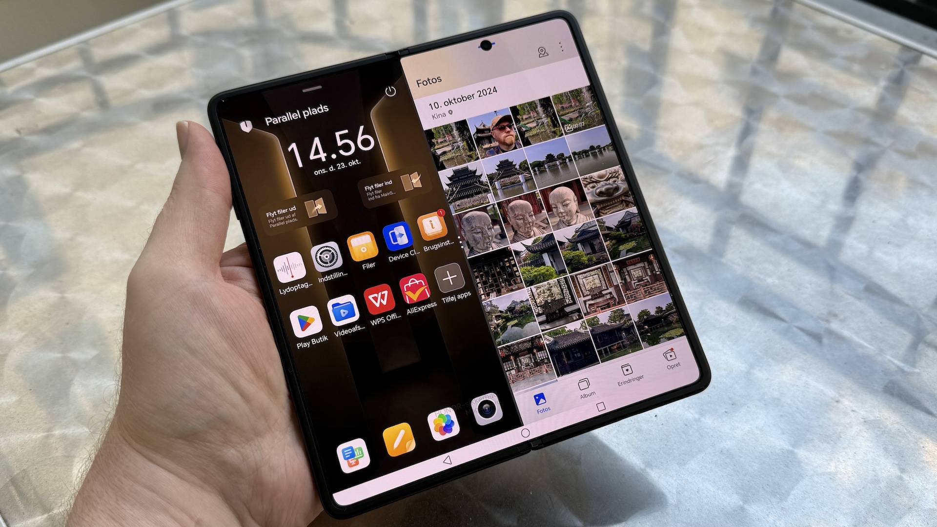 Honor on onnistunut yhdistämään Androidin ja MagicOS:n loistavalla tavalla niin, että koko suuri näyttötila tulee hyödynnettyä. Etenkin Parallel Space -toiminto on mahtava: sillä voi erotella sovelluksia ja dokumentteja erilliseen ja yksityiseen tilaan, joka voi joko täyttää koko näytön tai näkyä rinnakkaisikkunassa (siitä nimikin) aloitusvalikon vieressä. Parallel Space -tilassa voi tallentaa kuvia ja tiedostoja, joiden ei halua olevan julkisesti saatavilla muualla puhelimessa – tai sillä voi erotella vaikkapa vain työhön liittyvän sähköpostisovelluksen ja yhteystiedot omaan tilaansa. Ihan kuin olisi kaksi eri puhelinta yhdessä laitteessa!