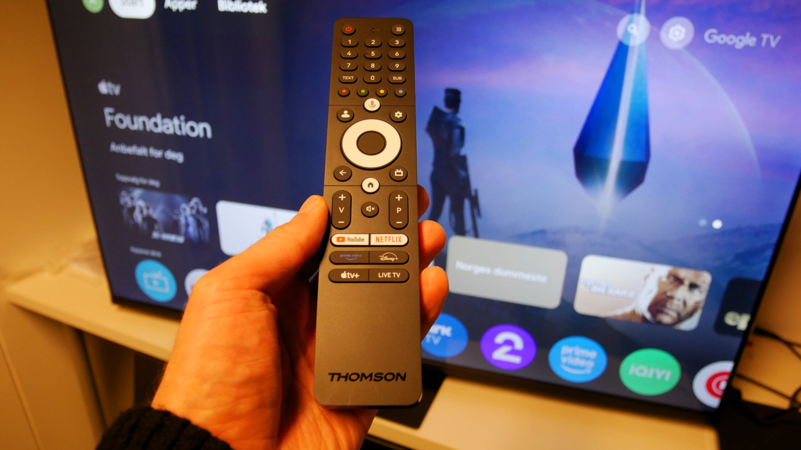IFFalcon U64:n tapaan Thomson UG5 on varustettu Google TV:llä, joten sovellusvalikoima on erinomainen ja käytettävyys selkeää. Kaukosäädin istuu mukavasti käteen, ja sen napeissa on miellyttävän pehmeä mutta tarkka tuntuma. Kaukosäätimessä on mikrofonikin, joten televisiota voi ohjata Google Assistant -puheohjauksella.
