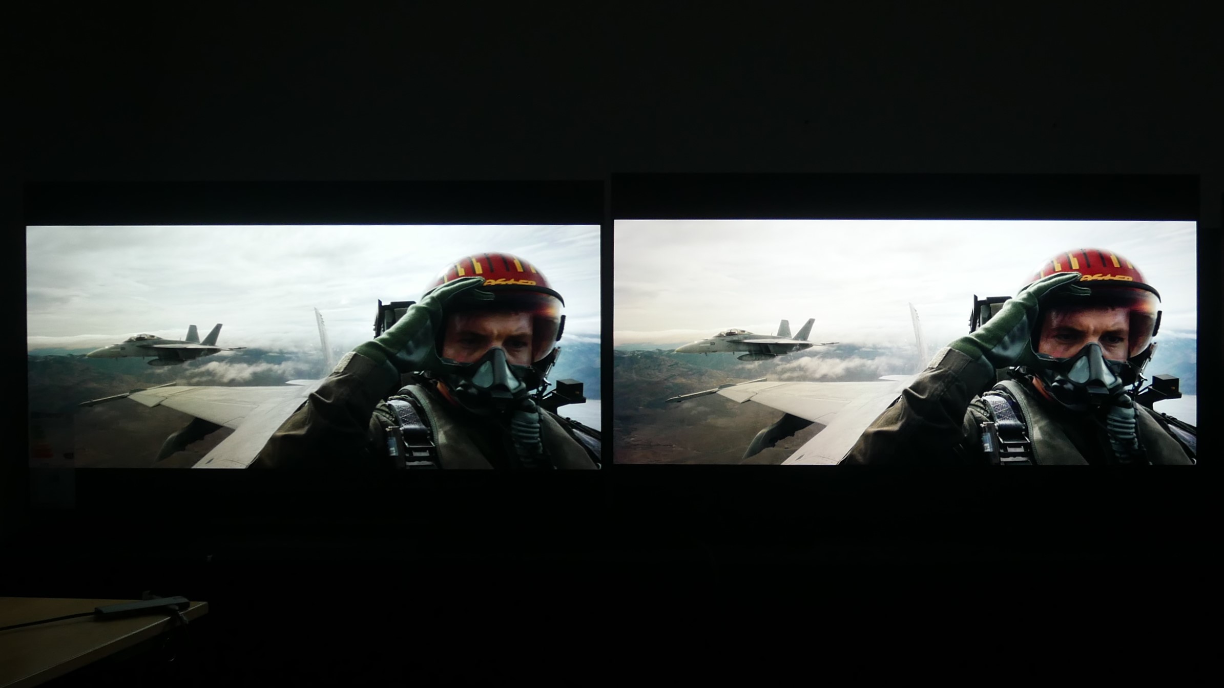 Kun LG ja Samsung olivat vierekkäin testihuoneessa, pääsimme tutkimaan formaattien eroja tarkemmin. Netflixin Top Gun: Maverick näytti selvästi paremmalta LG:n ja Sonyn Dolby-versiona. Hävittäjäkohtauksissa Dolbyn versiossa on enemmän informaatiota auringonvaloa ja pilviä sisältävällä taivaalla. Aika kiinnostava havainto, ja meidän mielestämme Samsungin kannattaisi ehdottomasti hypätä Dolby Vision -leiriin – tai houkutella suoratoistopalvelut käyttämään avointa HDR10+-formaattia.