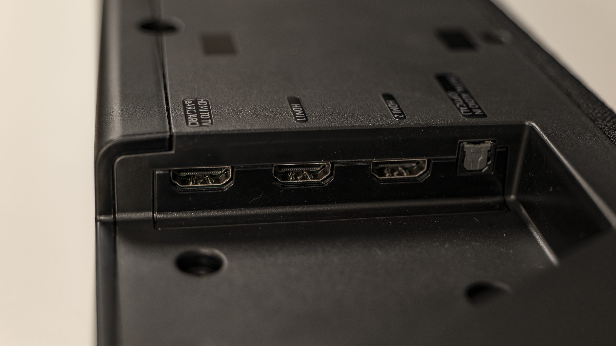 Samsung HW-Q960A on varustettu kahdella HDMI-sisääntulolla ja yhdellä HDMI-ulostulolla, jossa on television äänenpalautuskanava (eARC). Kuva: Geir Gråbein Nordby