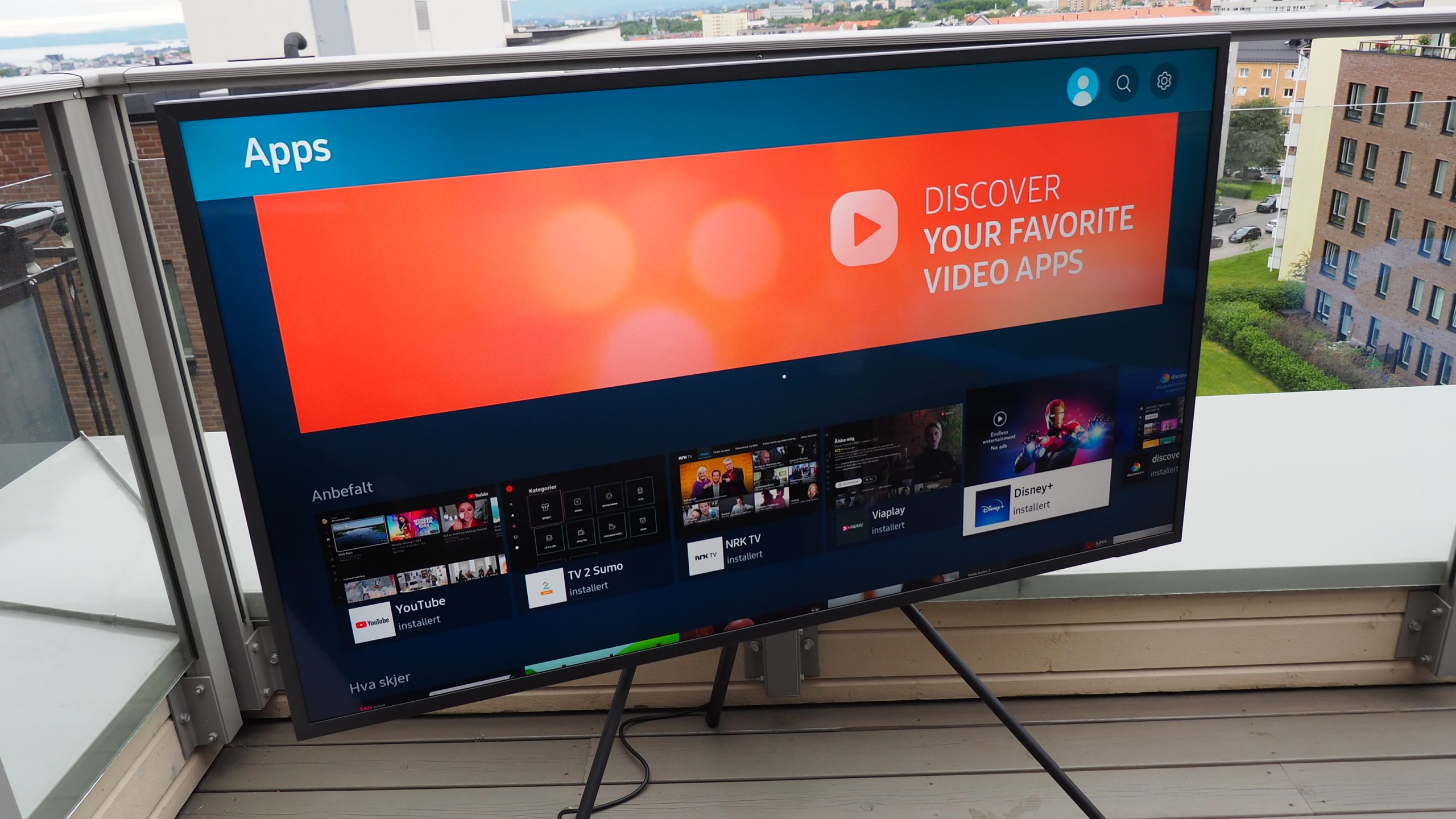 Kuten todettua, on tv tarkoitettu seinälle, mutta meidän piti lainata Samsungilta studiojalkaa, jotta saimme televisiota testattua. Emme suosittele tätä vaihtoehtoa pysyvään käyttöön, vaan mieluiten The Terrace kannattaa kiinnittää seinälle terassikatoksen alle.