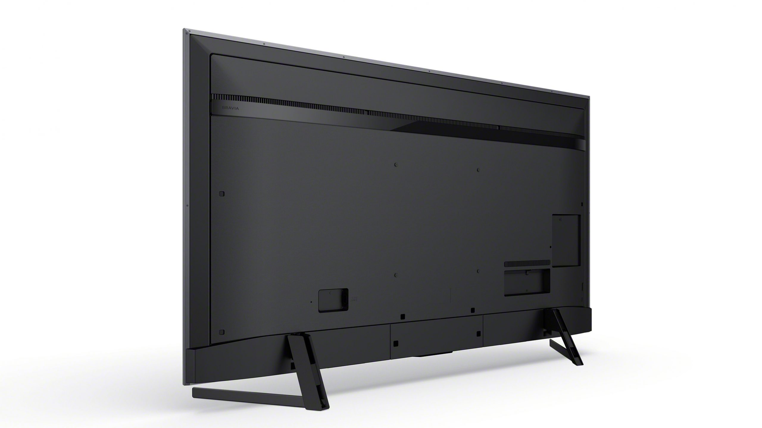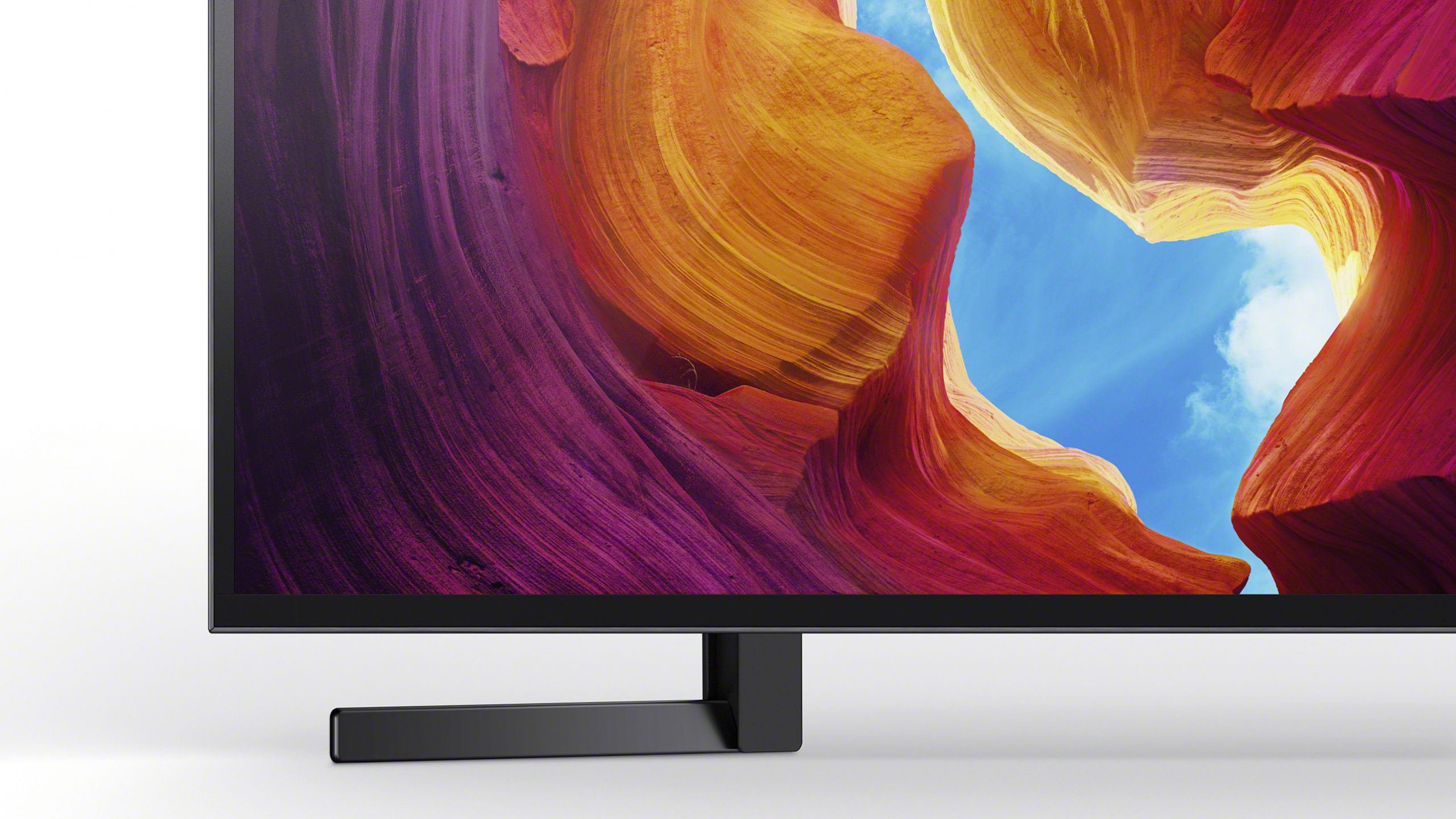 85-tuumaisessa on jykevämmät jalat kuin muissa XH95-sarjan malleissa. Ne on käännetty hieman ulospäin, jotta niiden väliin mahtuu soundbar. Kuva: Sony