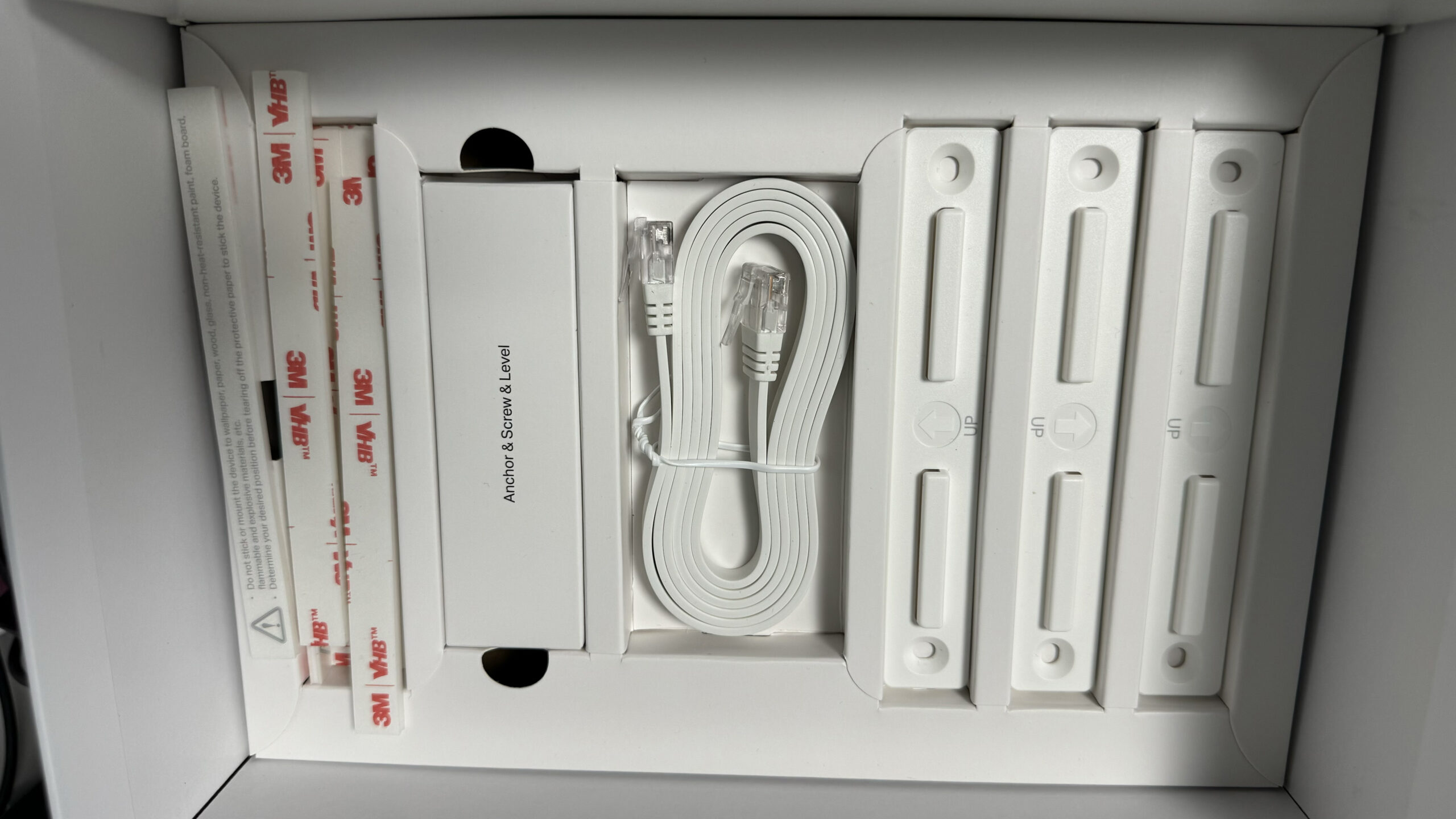 Laitteiden takapuolella on kaksipuoleista teippiä molemmilla reunoilla, joten yksiköt voi vain liimata seinään. Pakkauksessa toimitetaan myös ruuvit, mikäli kaipaa jämäkämpää kiinnitystapaa.