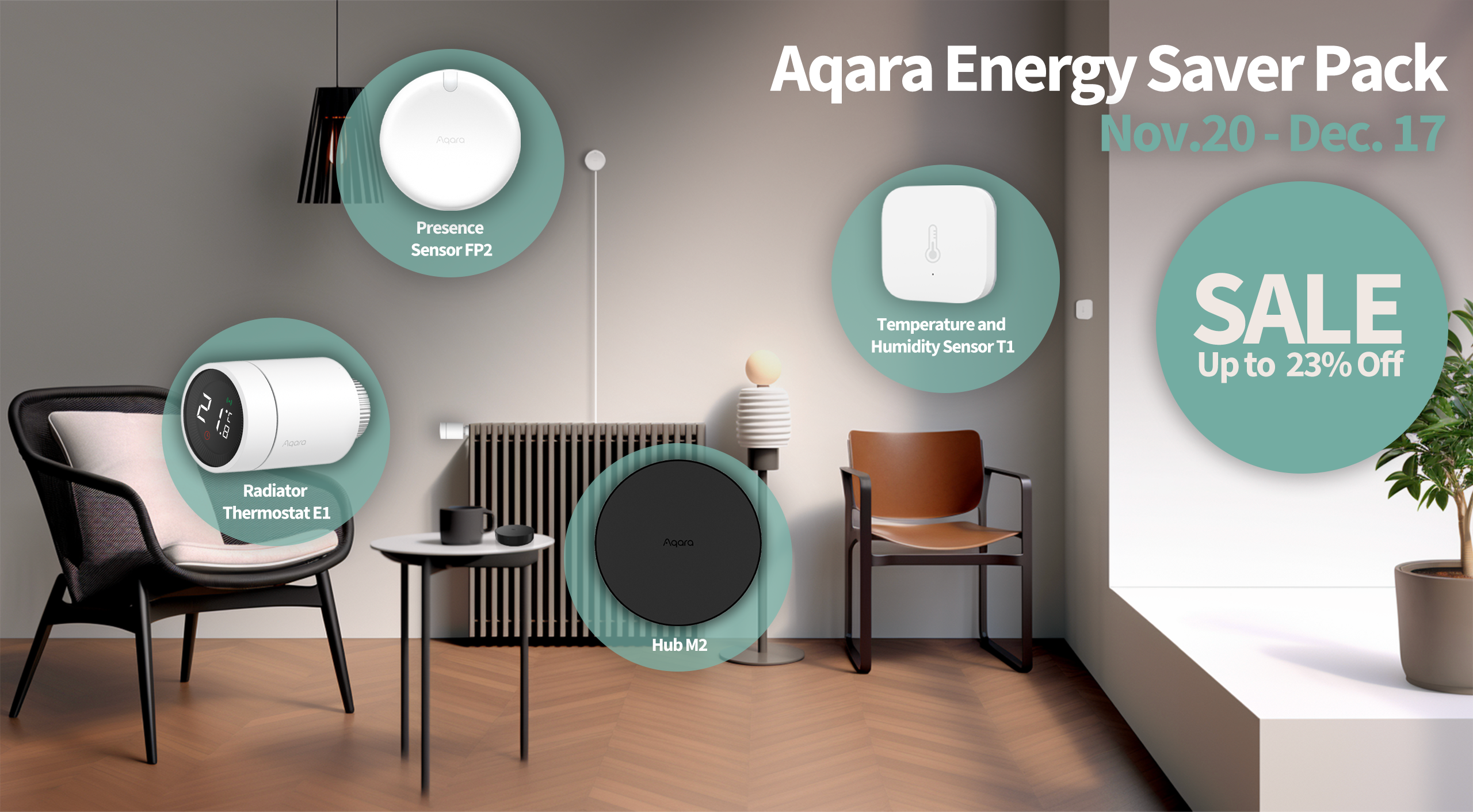 Aqara Energy Saver Pack on saatavilla rajoitetun ajan 20.11.2023 alkaen hintaan 169,99 € – hankkimalla laitteet settinä säästää jopa 23 % erikseen ostettaviin normaalihintaisiin tuotteisiin verrattuna.