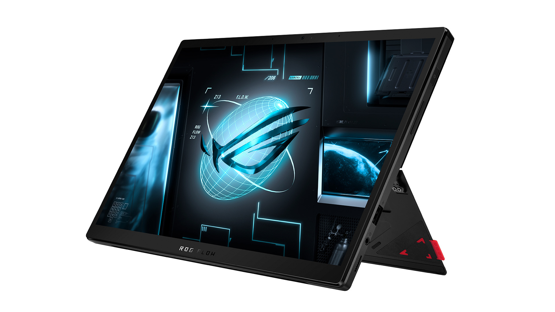 Asus Rog Flow Z13 ei ole perinteinen kannettava, vaan tabletti. Formaatti on tuttu esimerkiksi Microsoft Surface Pro -mallista, jonka tukijalusta ja magneettisesti kiinnitettävä näppäimistö – joka toimii myös näytön suojuksena – tarjoavat tavallisesta kannettavasta muistuttavan käyttökokemuksen.