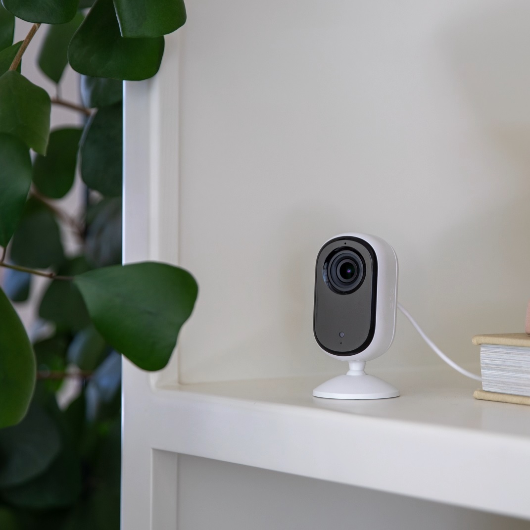 Arlo Essential Indoor -kamerassa on kaksisuuntainen ääni, sireeni, yökuvaus, 130 asteen kuvakulma ja linssinsuojus, joka automaattisesti peittää kameran linssin, kun käyttäjä on kotona.