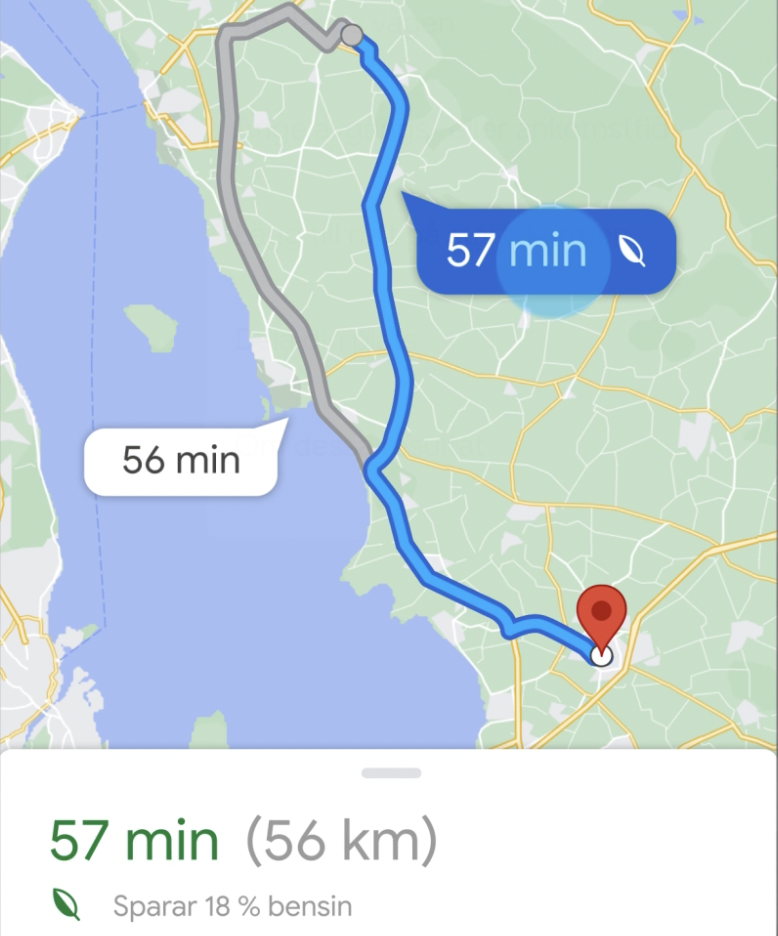 Google Maps tuo pian Suomeen Fuel Needle Routes -nimisen toiminnon, joka ilmestyy sovellukseen automaattisesti, kun nopeimmalle reitille on tarjolla vihreämpi vaihtoehto.