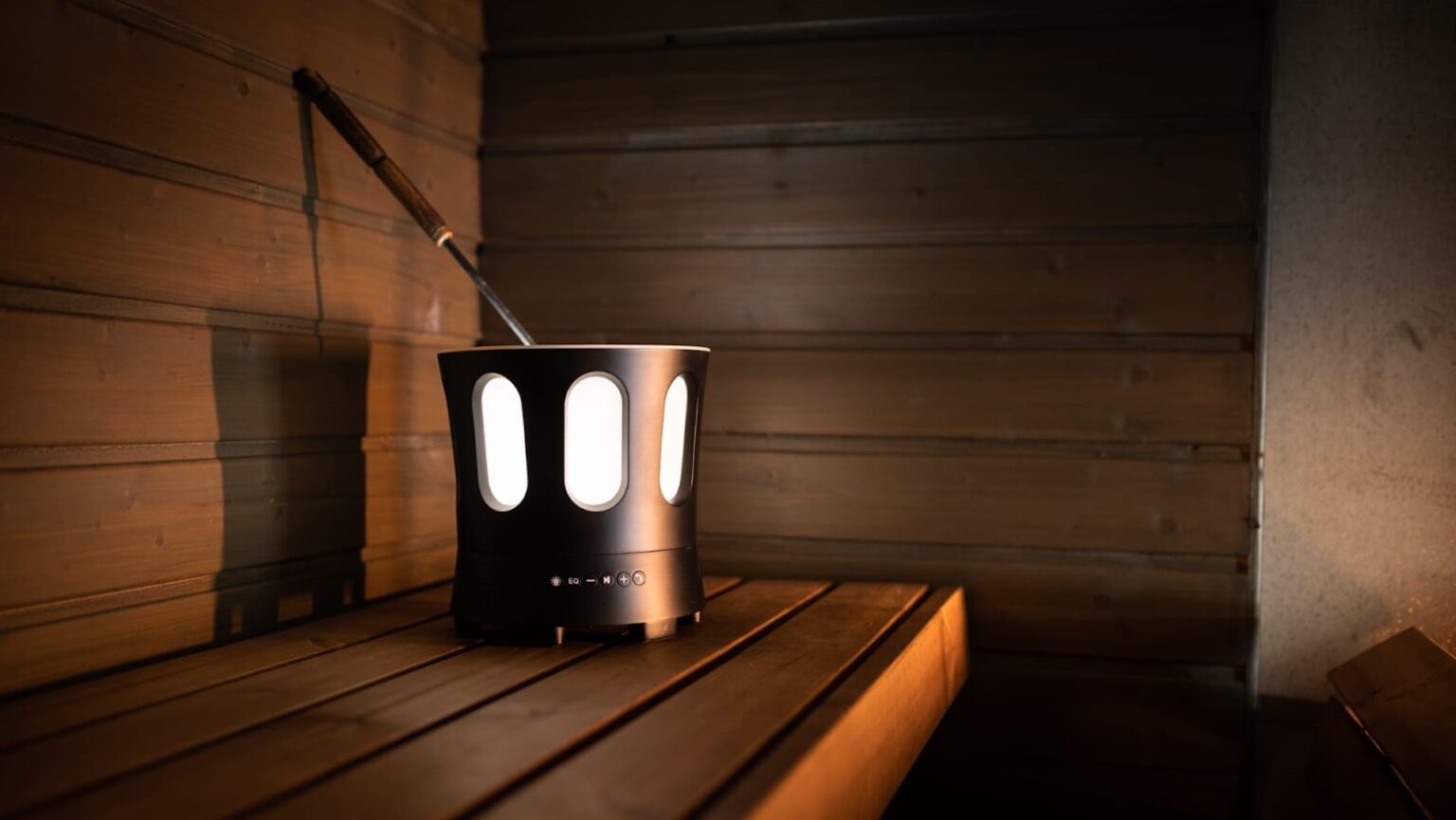 Ja nythän se onnistuu, sillä kotimainen Zone Bluetooth -kaiutin ei hätkähdä löylyjä ja säilyttää lisäksi saunajuomat kylmänä, sillä sankomaisen muotoilunsa ansiosta kaiuttimen voi ladata jäillä, ja sekaan mahtuu vielä kolme tai neljä olutta. Toki sanko toimii myös soivana löylykiuluna.