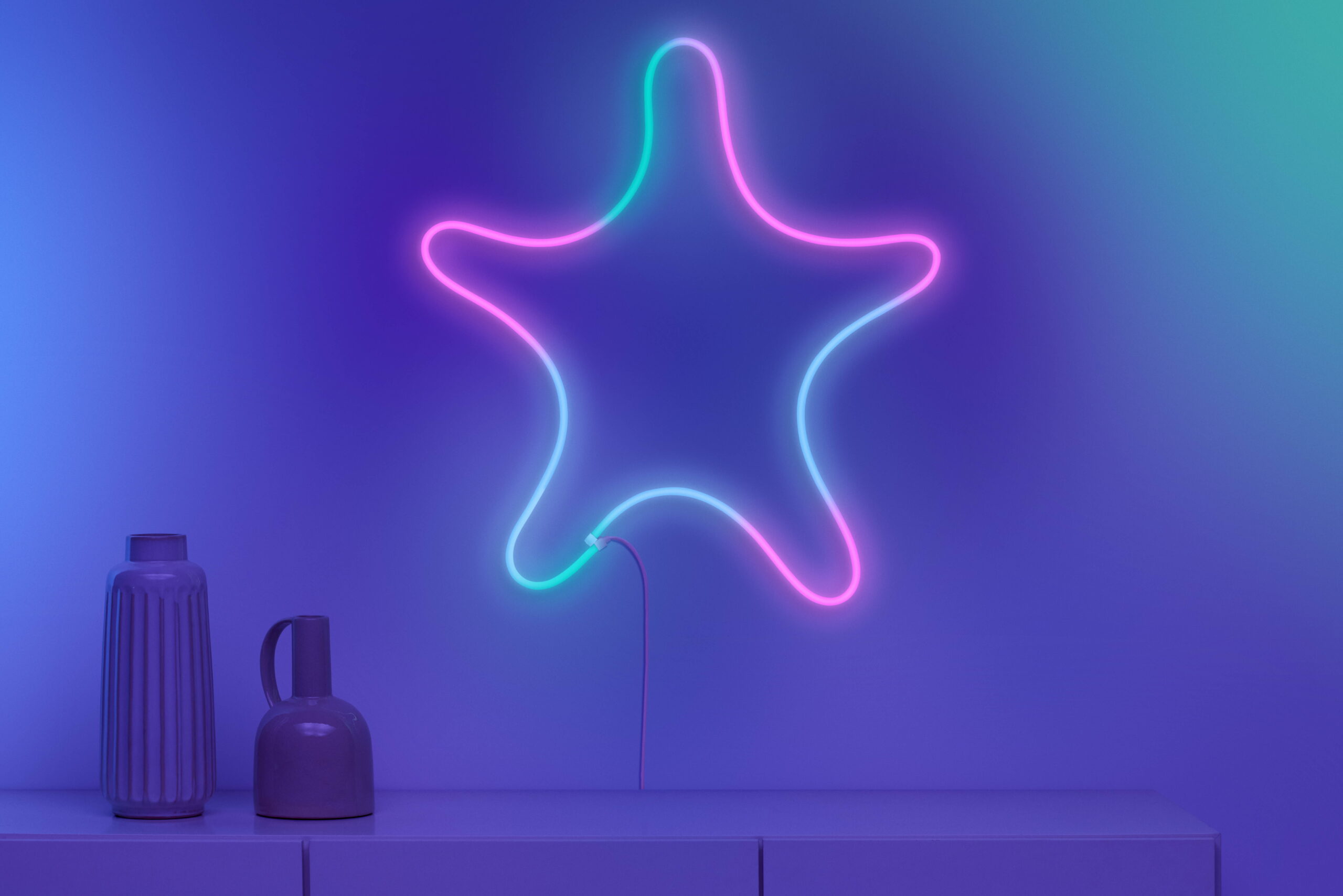Jos haluaa leikitellä valaistuksella vähän enemmän, on tarjolla myös Neon Flex Strip. 3-metrisen valonauhan saa taivuteltua haluamaansa muotoon ja kiinnitettyä seinälle mukana tulevilla kiinnikkeillä. Monesta kilpailijastaaan Wizin valonauha poikkeaa siinä, että se tarjoaa myös gradient-ominaisuuden, jolla yhden värin sijaan nauhaan saakin eloisia liukuväriefektejä.