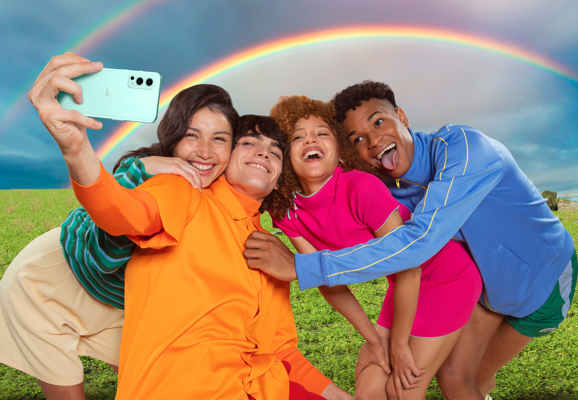 Puhelimen etupuolella on 32 Mp:n IMX 615 -kenno, joka osaa tarkentaa automaattisesti jopa viiden henkilön kasvoihin samanaikaisesti. Kuva: OnePlusOnePlus Nord 2:n on toisaalta säilyttänyt edeltäjästään näytön, joka on 6,43” Fluid AMOLED FHD+ -resoluutiolla (2400 x 1080) ja 90 Hz:n virkistystaajuudella.