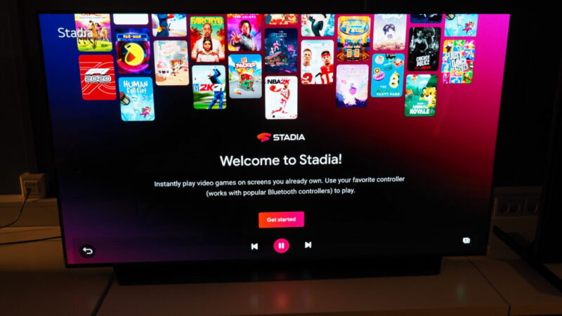 Google Stadium on ladattavissa LG:n televisioihin 22 maassa, mukaan lukien Pohjoismaat. Palvelu toimii WebOS 5.0- tai 6.0-käyttöjärjestelmillä, eli käytännössä tv ei saa olla vuoden 2020 mallia vanhempi. Kokeilimme ja löysimme Stadian nopeasti testihuoneessamme olleesta LG OLED55CX-televisiosta vuodelta 2020.