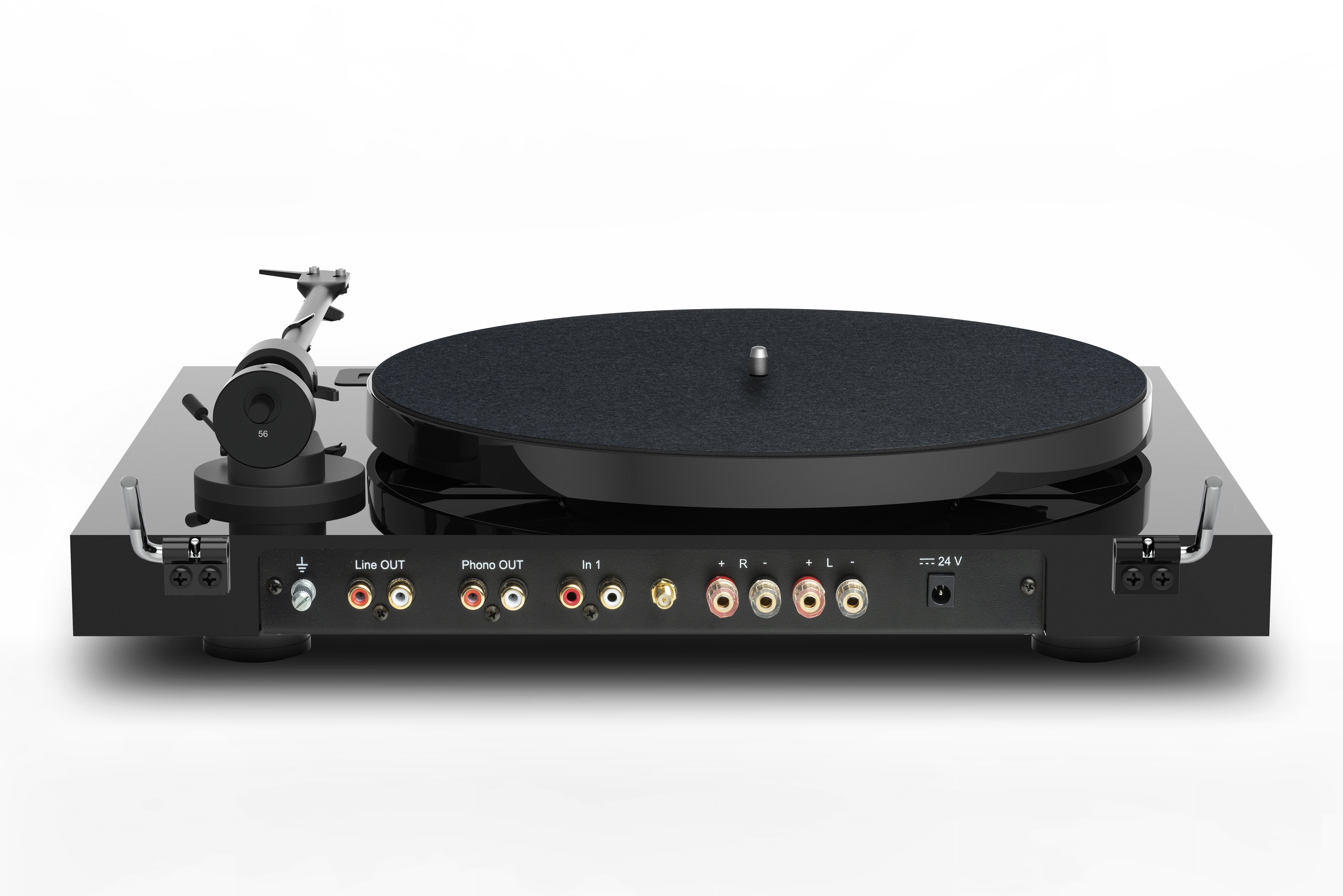 Kaiuttimet kytketään soittimen taakse, ja samasta paikasta löytyy myös sisääntulo ulkoista äänilähdettä varten. Sisäänrakennetun esivahvistimen ansiosta laitteen voi kytkeä suoraan mihin tahansa vahvistimeen, mutta sisäänrakennetun voi toki unohtaa ja käyttää myös esivahvistimella varustettua vahvistinta. Soittimen etupuolella on volyymisäädin sekä pieni näyttö, joka kertoo äänenvoimakkuuden lisäksi valitun sisääntulon ja nopeuden.