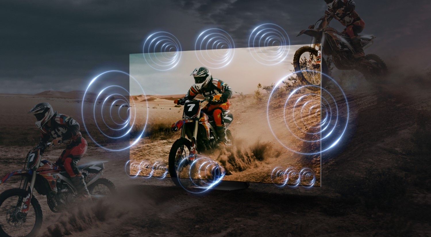 Monessa tämän vuoden Samsungin televisiossa on paranneltu ääntä edistyksellisen Object Tracking Sound/OTS + -surroundäänen avulla. Ominaisuus on meille tuttu jo aiemmista malleista: se analysoi kuva- ja äänisignaaleja ja hyödyntää strategisesti sijoitettuja kaiuttimia suuremman ja realistisen äänikuvan aikaansaamiseksi. Tv siis osaa yhdistää ruudun puhujat ja äänen ja toistaa äänen tarkemmin puhujan suunnasta. Samsungin televisiot voi tietysti yhdistää myös saman valmistajan soundbarien kanssa: Q Symphony -merkityt soundbarit osaavat käyttää tv:n omia kaiuttimia osana äänijärjestelmää, ja Spacefit Sound optimoi äänen tilan akustiikan mukaan.