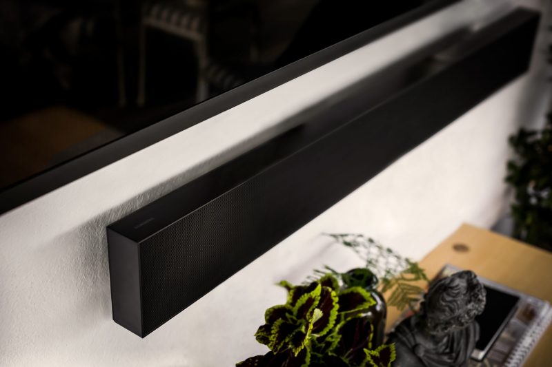Ulkotv:n kanssa tarjolla on myös siihen sopiva soundbar Terrace Soundbar HW-LST70T (999 €). Sen bassontoistoon on kiinnitetty erityistä huomiota, ja jotta ääni erottuisi ulkonakin, on siinä ”integroitu bassokaiutin”. Television tapaan se on suojattu pölyä ja vettä vastaan IP55-luokituksen mukaisesti, ja se asennetaan television alle tai kiinteästi seinään.