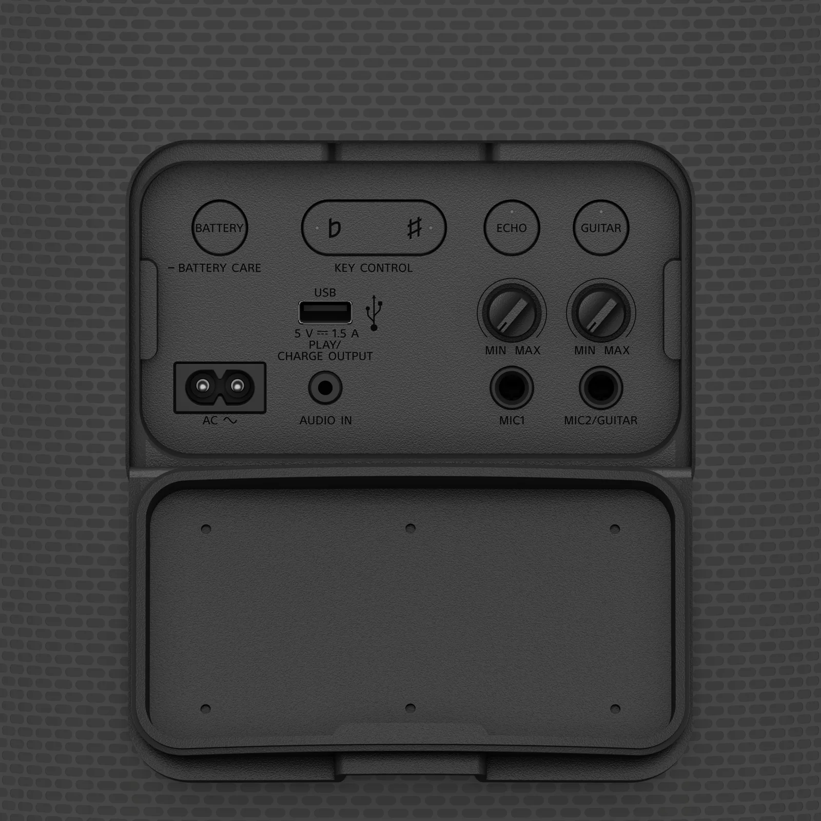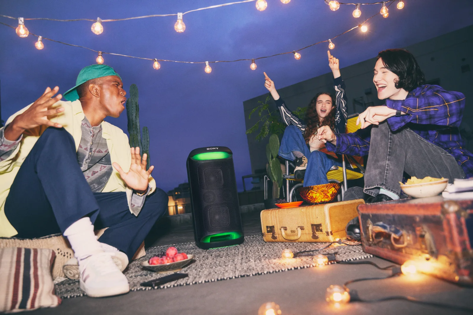 Sony SRS-XV500 tottelee Music Center- ja Fiestable-sovelluksia, joilla säädetään esimerkiksi valoja, ääniefektejä ja Voice Changerin ja Echon tapaisia karaoketoimintoja.