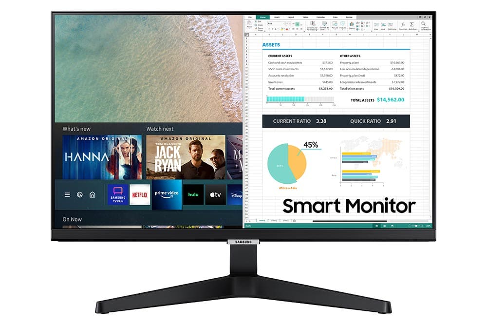 Viime vuonna Samsung esitteli uuden Smart Monitor -mallistonsa, joka yhdistää näytön ja älytelevision. Ne näyttävät tavallisilta tietokoneen näytöiltä, mutta niissä on sisäänrakennetut kaiuttimet, kaukosäädin ja graafinen käyttöliittymä, josta löytyvät suoratoistopalvelut, kuten Netflix ja YouTube, heti etusivulta. Niinpä sama näyttö toimii mainiosti sekä työskentelyyn että viihdekäyttöön.