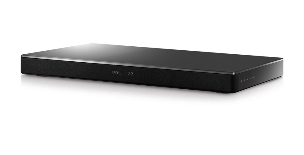 Philipsin soundbar on muotoilultaan kapea kuin mikä, ja sen ansiosta erittäin tyylikäs katsella. Valitettavasti myös ääni on kapoinen.