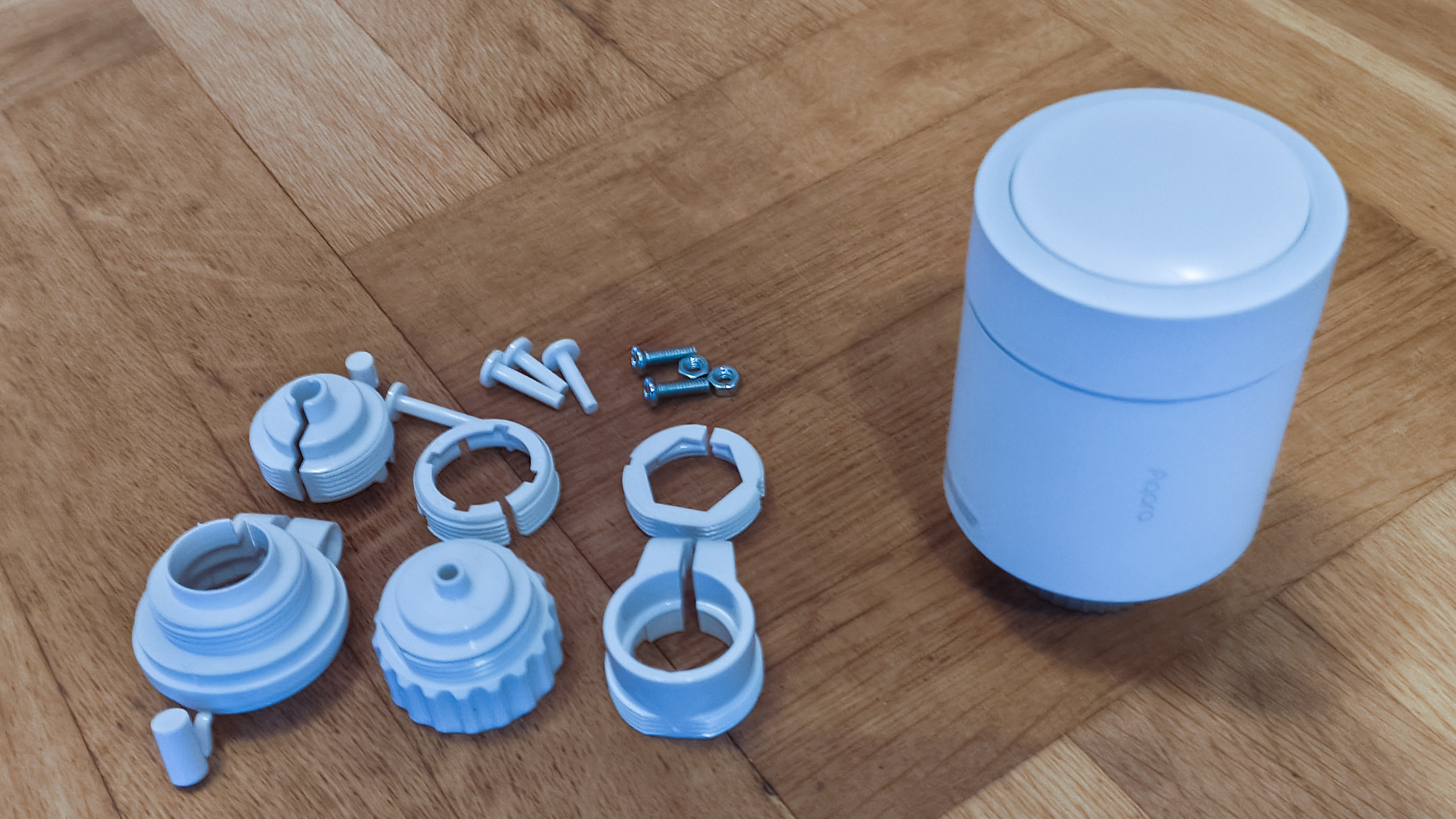 Aqaran pakettiin kuuluu kuusi adapteria, joten termostaatti sopii monenlaisiin vesikiertoisiin pattereihin. Asennus sujuu nopeasti ja helposti. Paristot ovat valmiina termostaatissa, joten ensin tarvitsee vain vetää irti pieni muoviläpyskä, jonka jälkeen laite on käyttövalmis.
