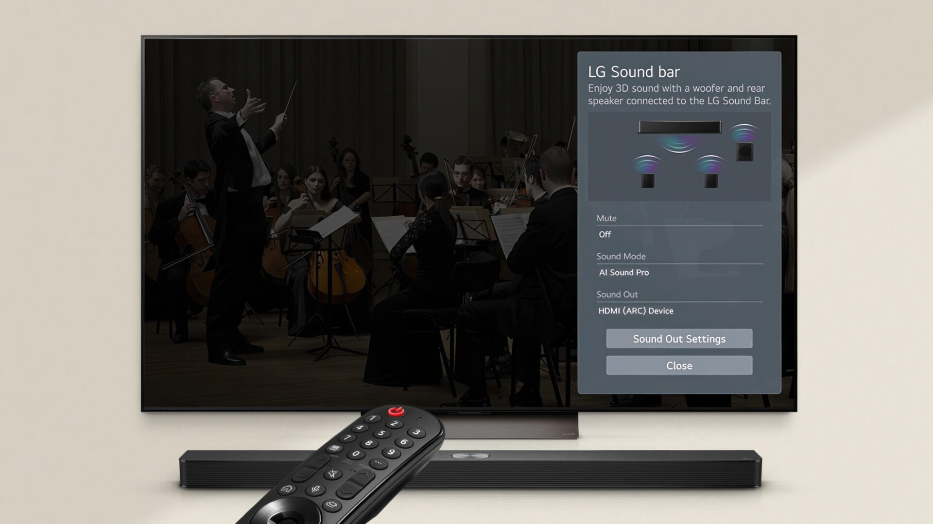 WOW Orchestran ja WOW Interfacen avulla kaiutin integroituu saumattomasti LG:n televisiomallien kanssa, eli television kaiuttimet toimivat yhdessä soundbarin täyttääkseen huoneen vieläkin isommalla äänellä. Lisävarusteena on saatavilla seinäkiinnike, joka sopii LG:n televisioihin. Muiden televisiomerkkien kanssa soundbar joutuu pärjäämään omillaan.