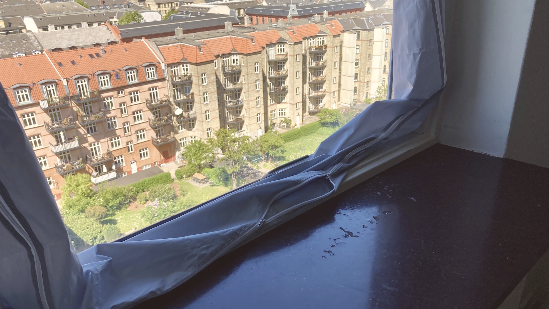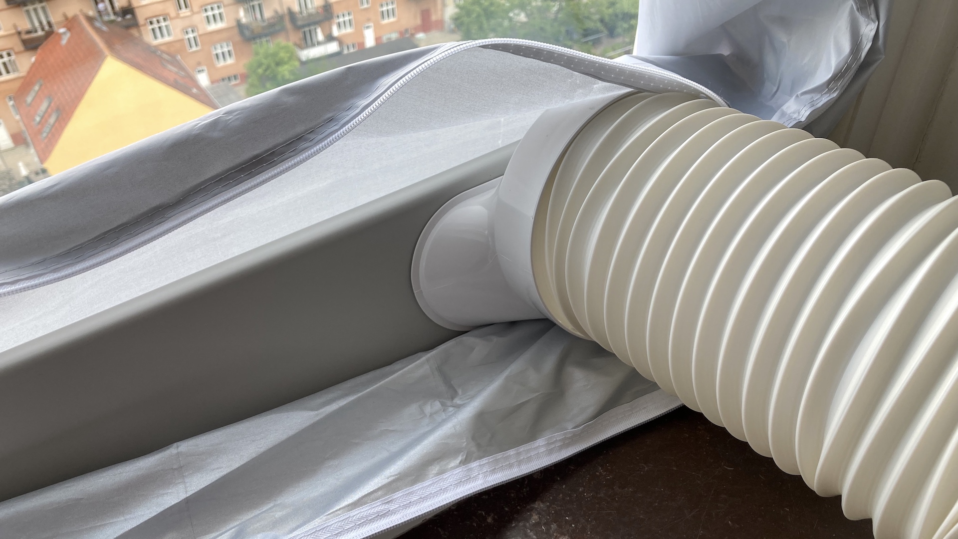 Letkut kiinnitettiin paikalleen kiinnikkeellä, joka oli puoliksi avonaisen ikkunan alareunassa. Tällainen asennustapa ei ole aivan välttämätön, mutta sillä saa paremman tehon viilennykseen – Electroluxin mukaan tiivistetty letkuasennus tekee jäähdytyksestä 28 prosenttia tehokkaampaa.