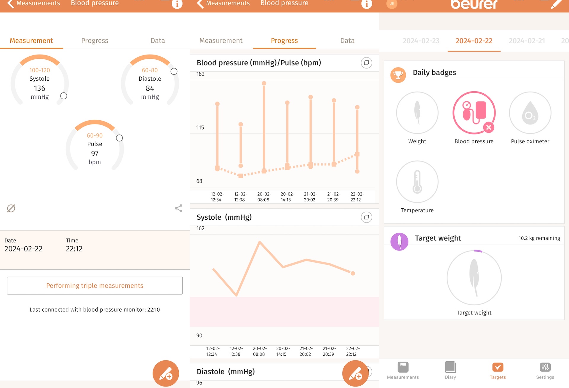 Beurerin verenpainemittari on kätevä mittari etenkin sellaisille käyttäjille, joiden mielestä tarramansetin saaminen kohdilleen on hankalaa. Näyttö kertoo selkeästi liikennevalovärein, mitä mieltä tuloksista voi olla. Jos haluaa seurata painettaan pitkältä ajalta, on hallintapaneeli siihen turhan monimutkainen ja sovellus taas vanhanaikainen. Muiden testin mittareiden tapaan Beurer poikkeaa lääkärin mittaustuloksista vain vähän, 1,5 prosenttia.