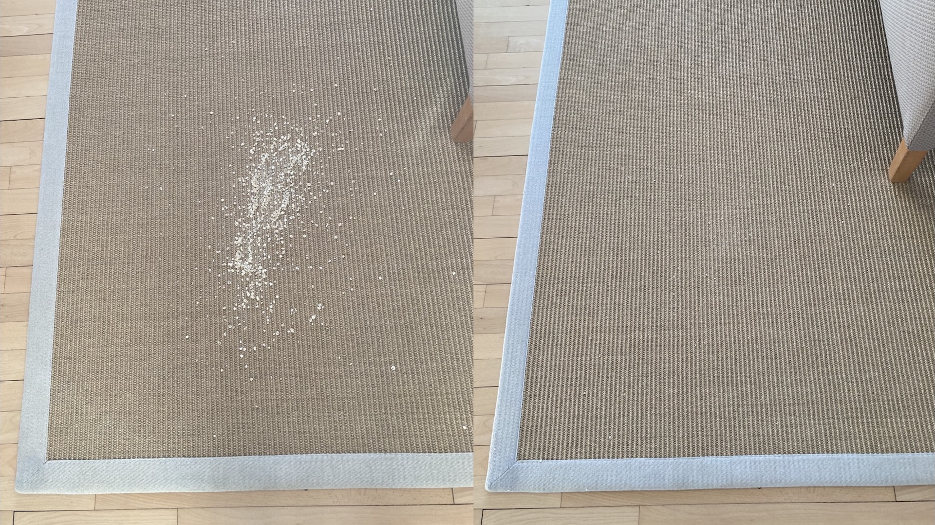 Sisalmattoa se ei sentään mopannut, vaikka sen kantatut reunat näyttivätkin märiltä operaation jälkeen. Ehkä robotin mielestä ne kaipasivat pesua.