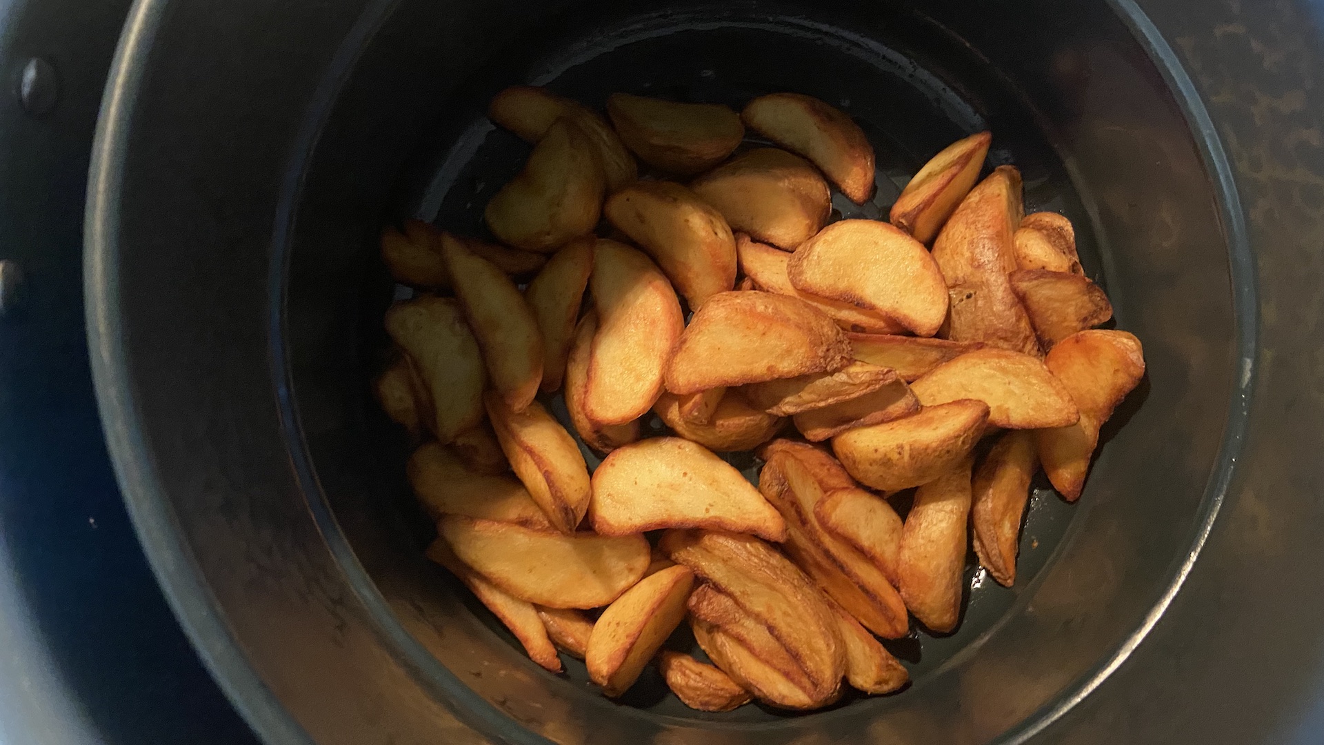 Lämpötila ja aika valitaan kuten uunitoiminnossakin. Puolivälissä paistoaikaa kone päästää todella, todella kovan äänen. Se ilmoittaa, että kone on aika laittaa pauselle (eli irrottaa kansi) ja ravistella kanoja. Kanasta tuli loppujen lopuksi oikein rapeaa, mutta ei sen rapeampaa kuin kiertoilmauunillakaan. Sama haaste oli ranskalaisten kanssa. Airfryerille omistettuja reseptejä löytyy netistä runsaasti, joten ehkä kone pitäisi vain oppia tuntemaan paremmin. Toinen vaihtoehto on, että osa multicookerin lukuisista toiminnoista on saatu aikaan airfryerin kustannuksella.