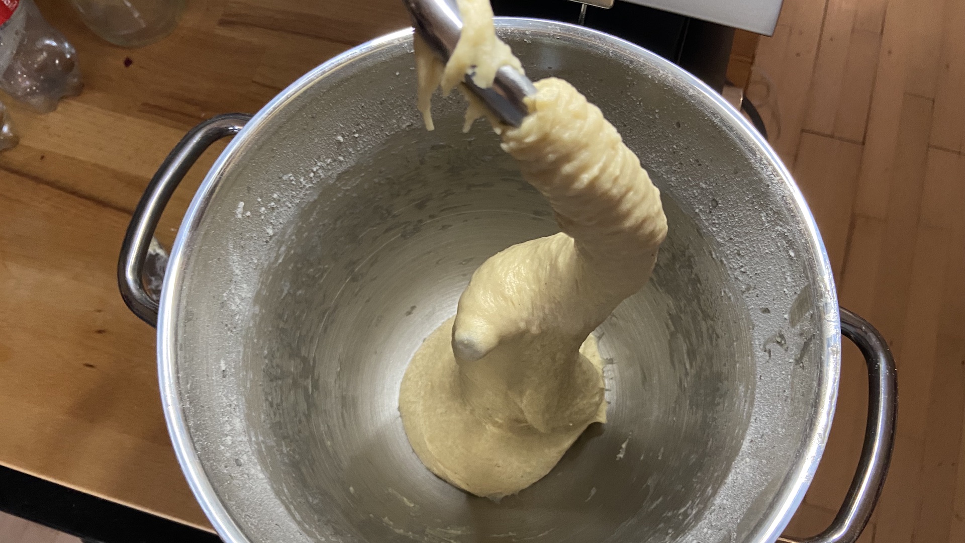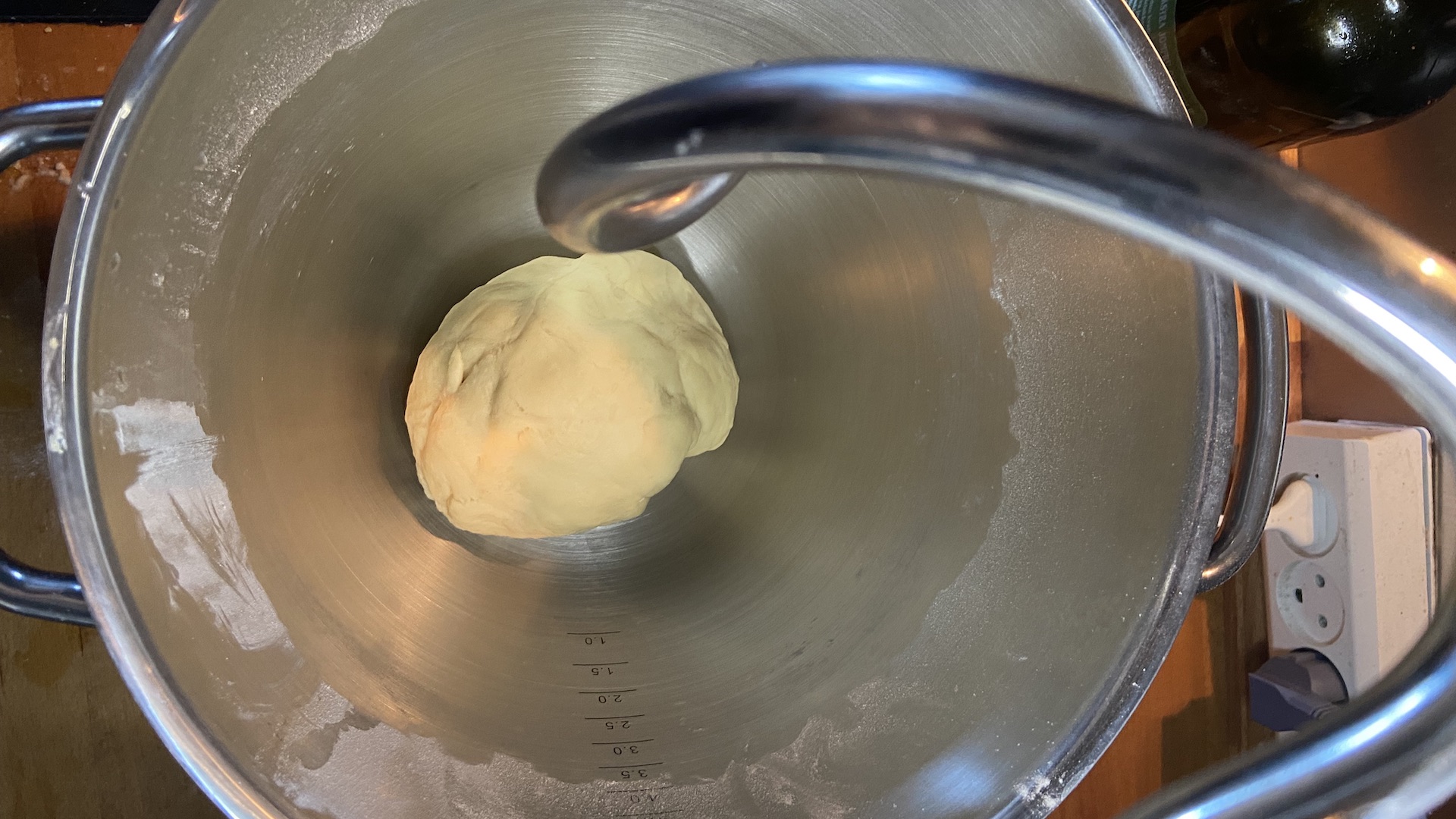 Patissier vaivasi pullataikinan nopeasti tahmeasta möykystä kimmoisaksi. Sen jälkeen taikina sai levätä kulhossaan lämmöt päällä, kunnes se oli kohonnut kolminkertaiseksi.