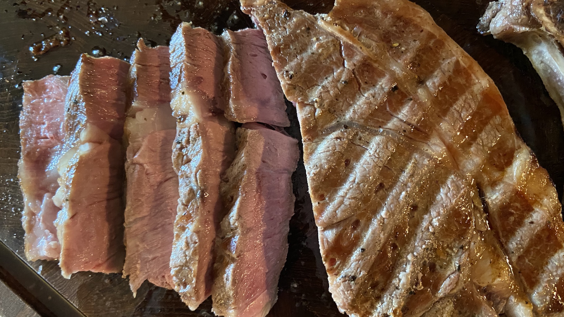 Parhaiten automatiikka toimii pihvin kanssa. Liha saa näkyvät paistoraidat ja sisälämpötilakin on melko kohdillaan. En kuitenkaan ole hirveän vaikuttunut. Paistopinta ei ole täydellinen.