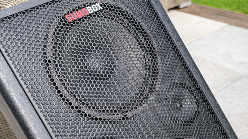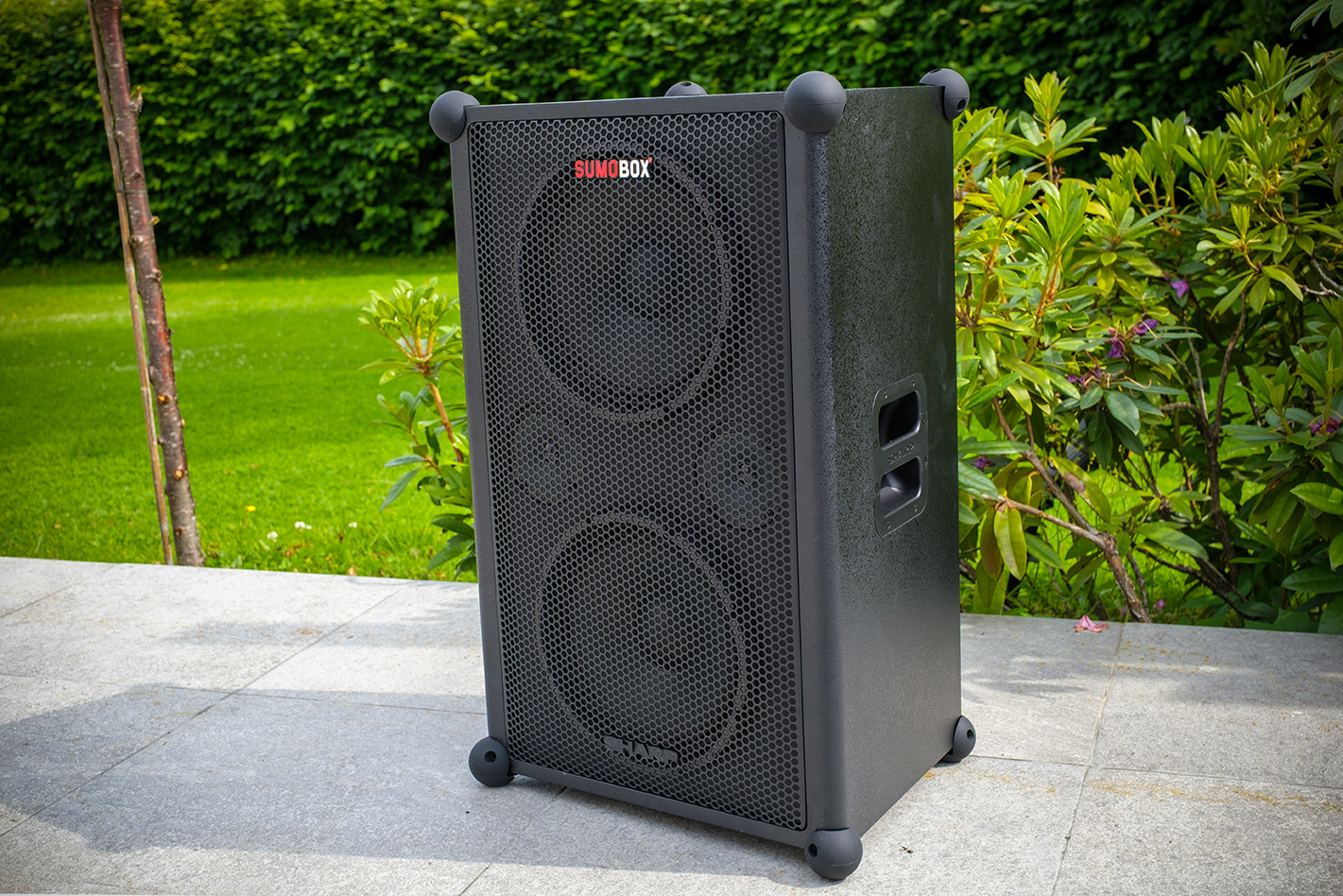 Sharpin PA-kaiuttimen näköinen Sumobox ei ehkä näytä bilekaiuttimelta, mutta sen soiton kyllä tuntee sisuksissaan. Sumobox Pro ei koreile valoilla tai muilla viihde-efekteillä, vaan pumppaa ääntä 108 desibelin voimin kahdesta 10-tuumaisesta bassoelementistään ja kahdesta 3-tuumaisesta keskirekisteri-diskanttielementistään.