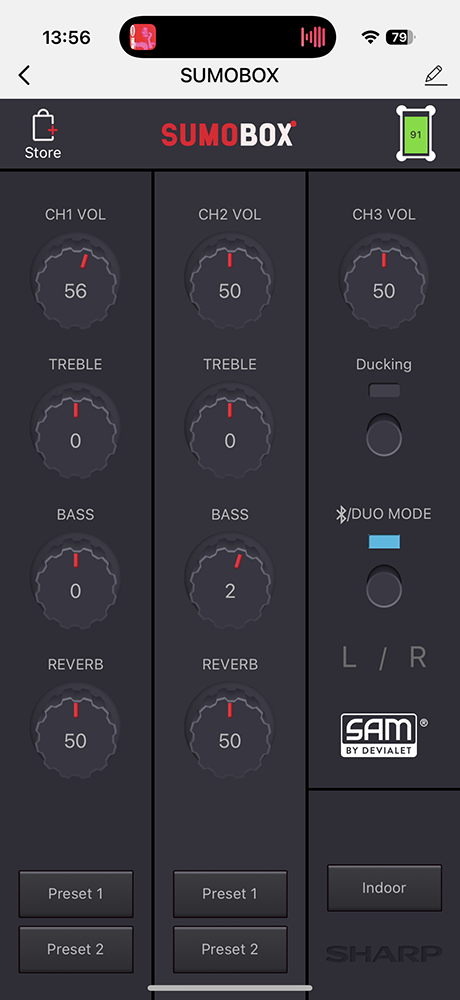 Sumoboxille on tietysti oma sovelluksensa, jolla musiikkia striimataan ja ohjataan, ja ääni on – uskomatonta kyllä – ranskalaisen highend-valmistaja Devialet’n hienosäätämä. Laitteessa on nimittäin Devialet’n Speaker Active Matching -toiminto.