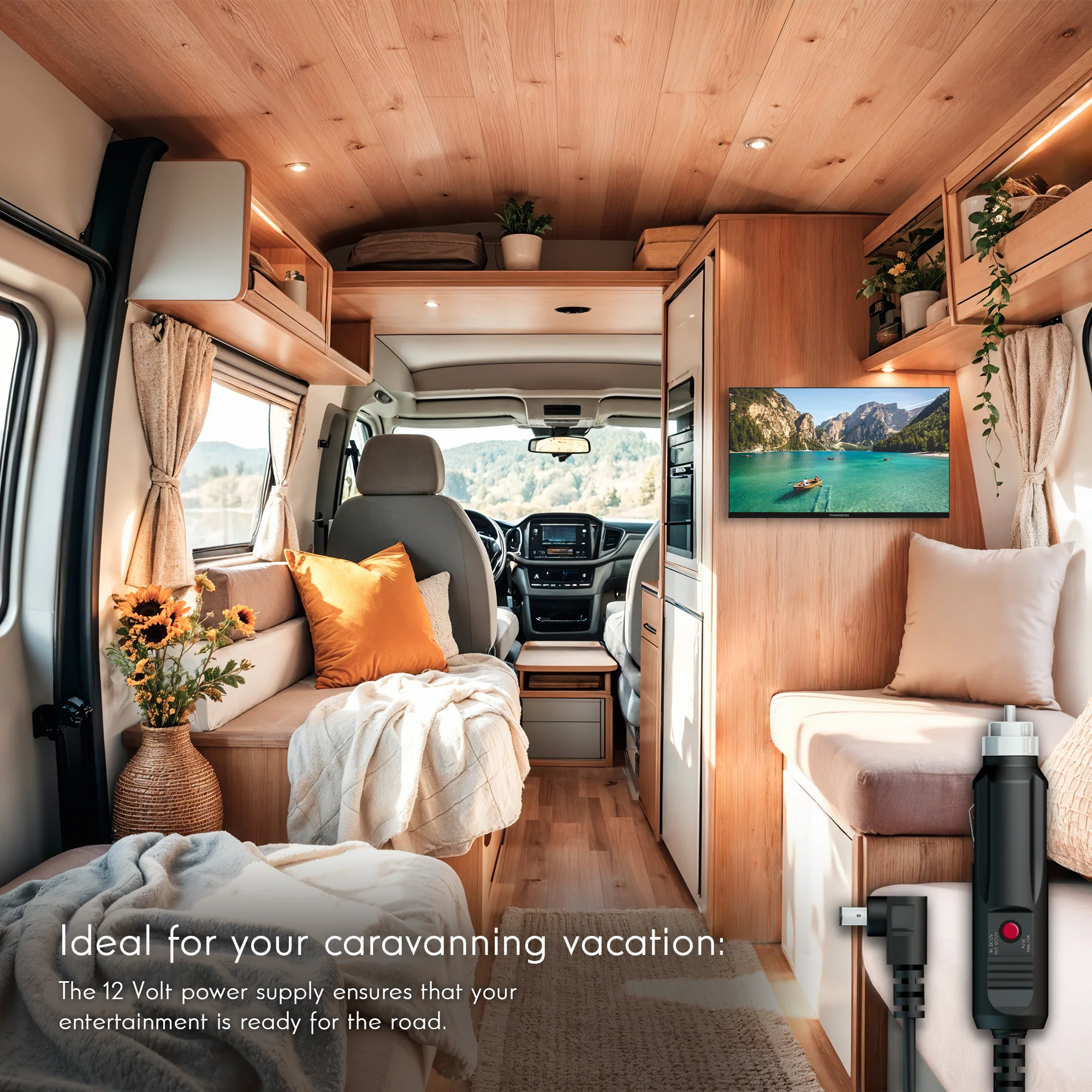 Thomson tarjoaa vertailun ainoana mallina mahdollisuuden käyttää televisiota 12 voltilla, mikä on kätevä vaihtoehto retkeilijöille. Pakkaukseen kuuluu 12 voltin adapteri, jonka saa kytkettyä auton tupakansytyttimeen (mutta tässä testissä sen toimivuutta ei kokeiltu).