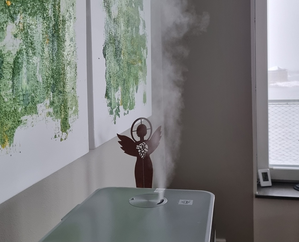 Laitteessa on myös tuoksusäiliö, johon voi tipauttaa vesiliukoista tuoksua, joka sitten vapautuu huoneilmaan. Kaikille huonetuoksut eivät tietenkään sovi, mutta olisin silti pitänyt siitä, että pakkauksessa olisi tullut mukana pieni tuoksunäyte. Siinähän olisi mahdollisuus myös lisämyyntiin.