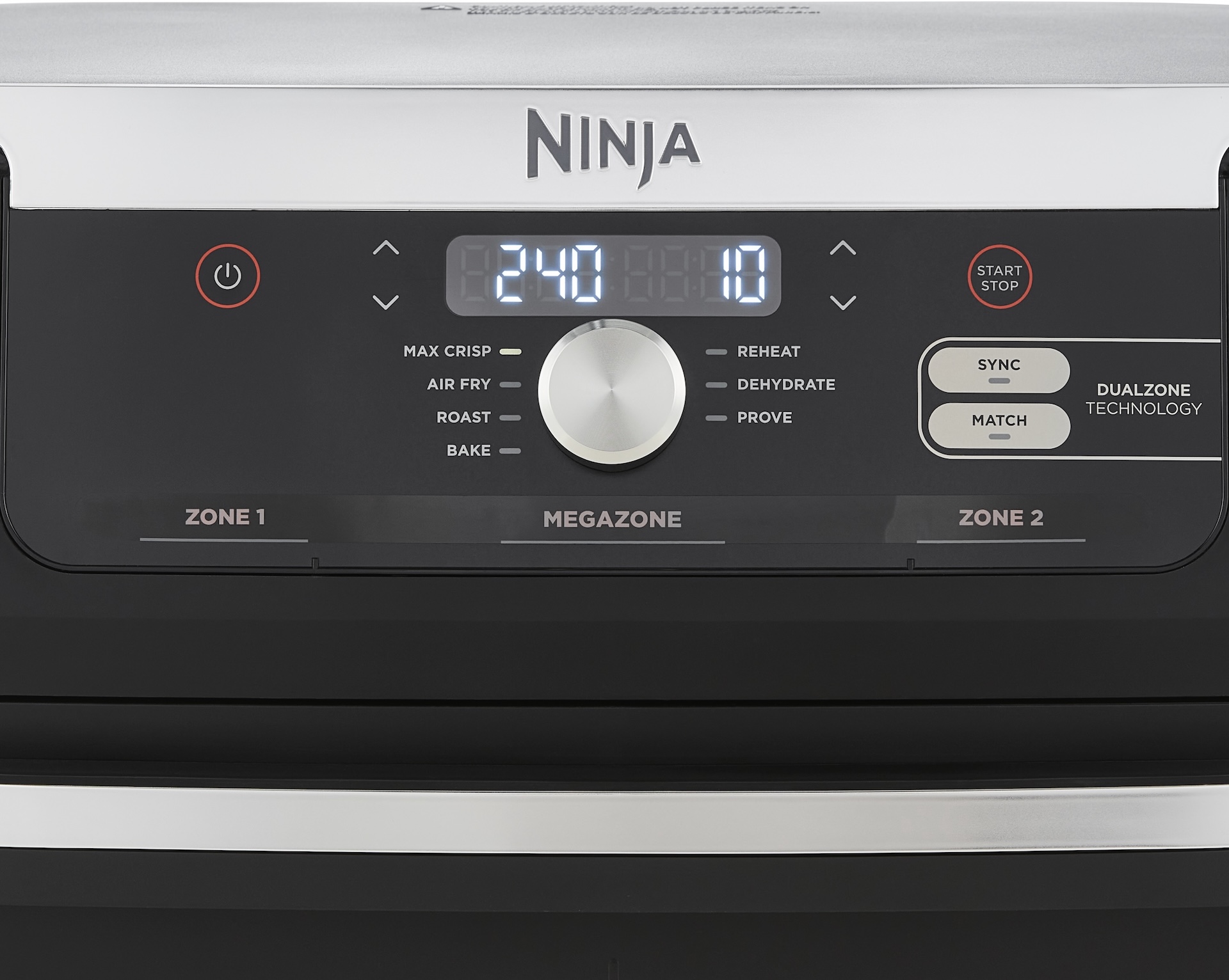 Toisin kuin vertailun muiden koneet, Foodi FlexDrawer ei luota kosketusnäyttöön. Sen sijaan laitteessa on siistit retronapit sekä pieni näyttö. Nappeja on kosketusnäyttöä helpompi käyttää etenkin kokkaamisesta tahmaantuneilla tai märillä sormilla. Kuten Cosorilla, ei Ninjallakaan ole valmisohjelmia eri ruoka-aineille, vaan laitteesta valitaan ruuanlaittotapa ja sen jälkeen säädetään arvot itse. Se on mielestäni valmisohjelmia parempi ratkaisu. Kokkaustyyleistä tarjolla ovat Max Crisp, Air fry, Roast (uuni), Bake (leivonta), Reheat (lämmitys), Dehydrate (kuivaaminen) ja Prove.