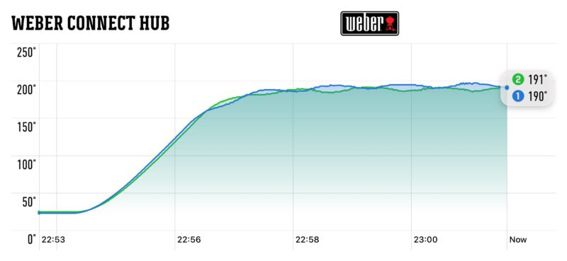 Perusasetus on 180 astetta ja 20 minuuttia, mikä on melko järkevä. Korit seurailevat toistensa tekemisiä erittäin tarkkaan, ja sekä iso että pieni kori saavuttavat 180 asteen lämpötilan 3 minuutissa. Tulos on testin nopein, joten teholla on tosiaan merkitystä. Outoa on kuitenkin se, että kumpikin kori asettuu noin 190 asteeseen, kun lämpötila on asetettu 180 asteeseen. Se ei ole hirveän vaarallista, kunhan pitää mielessä, että lämpötila on oletettua hieman korkeampi. Odotetusti Philipsin airfryer on erittäin tehokas ja ruuat onnistuvat juuri niin kuin on ajatellutkin.
