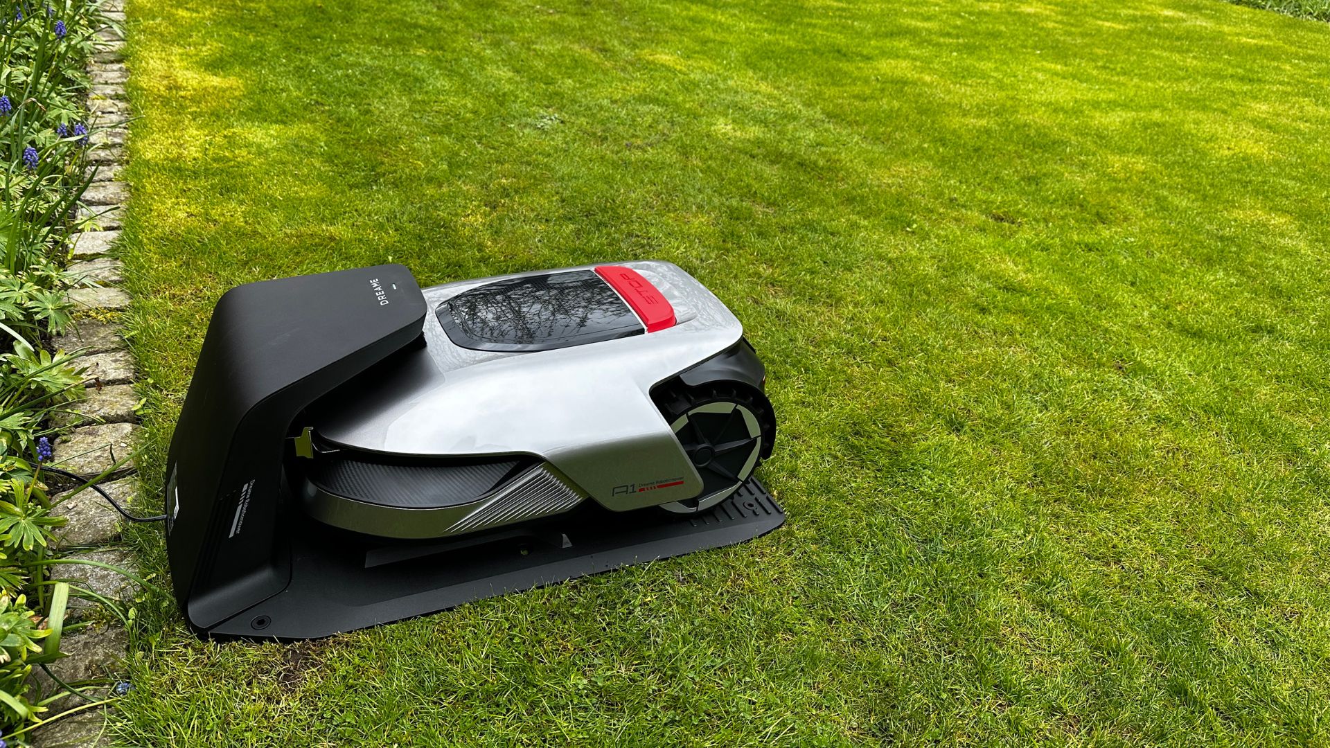 Dreame Roboticmower A1 erottuu muista roboteista metallinharmaalla ilmeellään ja linjakkaalla muotoilullaan. Tämä robottiruohonleikkuri tuo traktorin sijaan mieleen uutuudenkiiltävän sedanin. Ensisilmäyksellä robotti näyttää ehkä vähän kitsaasti varustellulta, mutta kuoren alta löytyy kunnon teknologiaa ja tehoja.