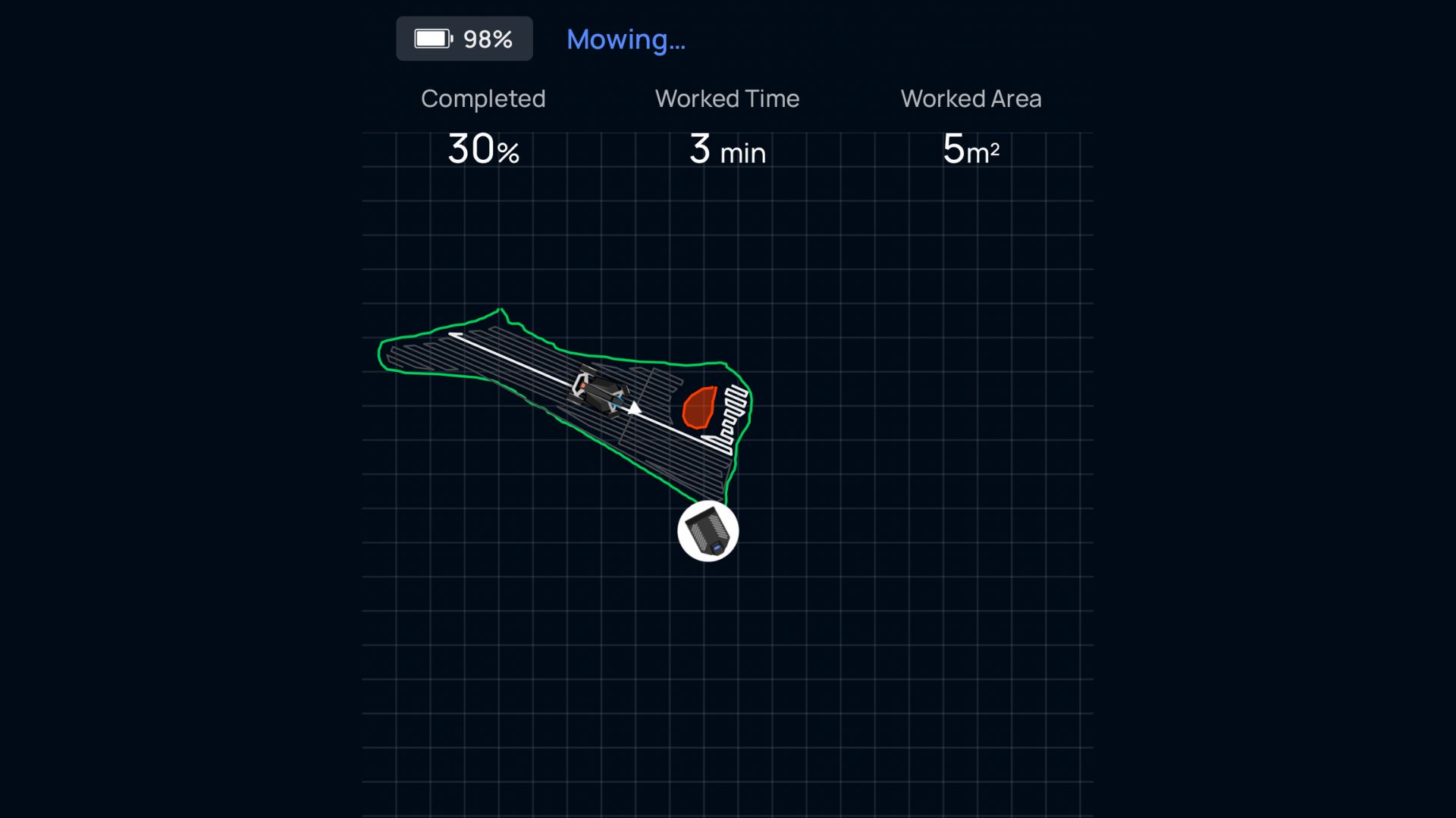 Robotin älykäs esteidentunnistus (smart obstacle avoidance) havaitsee esteet nimittäin jo 30–40 cm:n päästä. Silloin se pysähtyy ja kiertää esteen. Testasimme toimintoa, ja robotti reagoi joka kerta salamannopeasti – mikä on hyvä, kun miettii, miten hurjaa vauhtia se pihalla kiitää.