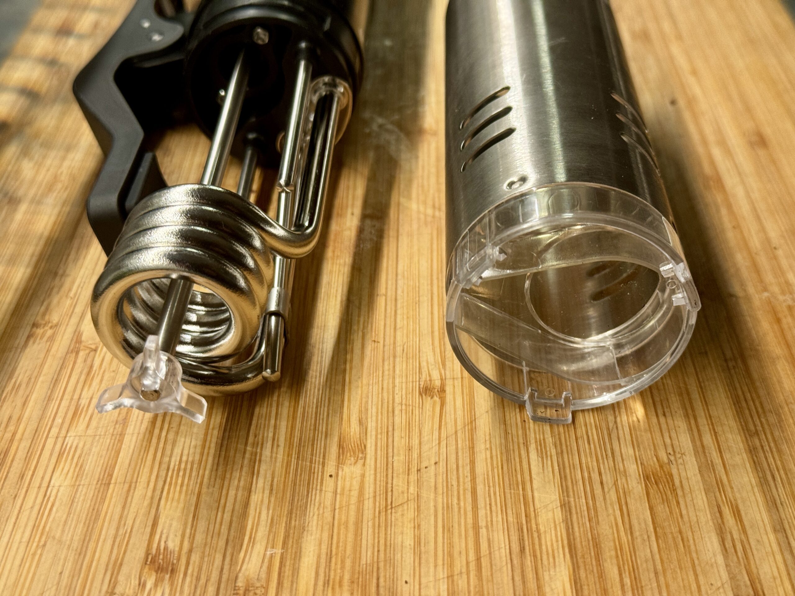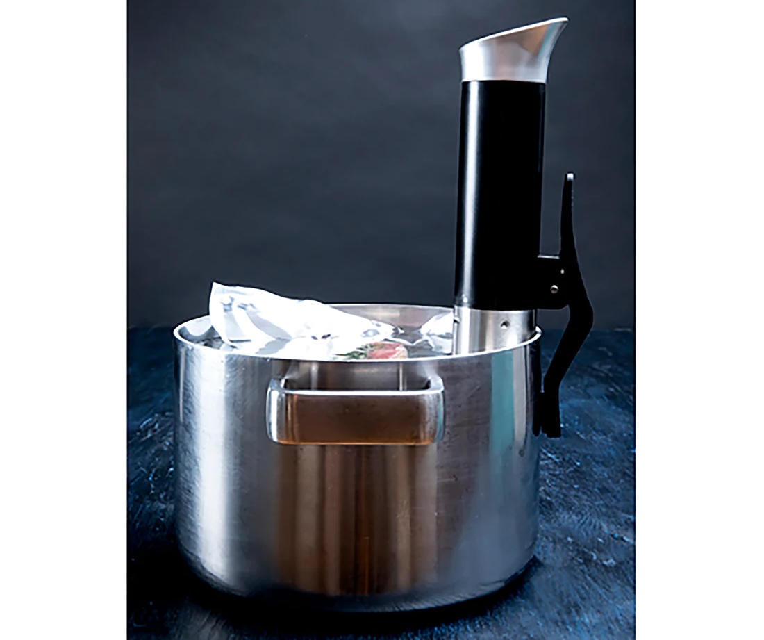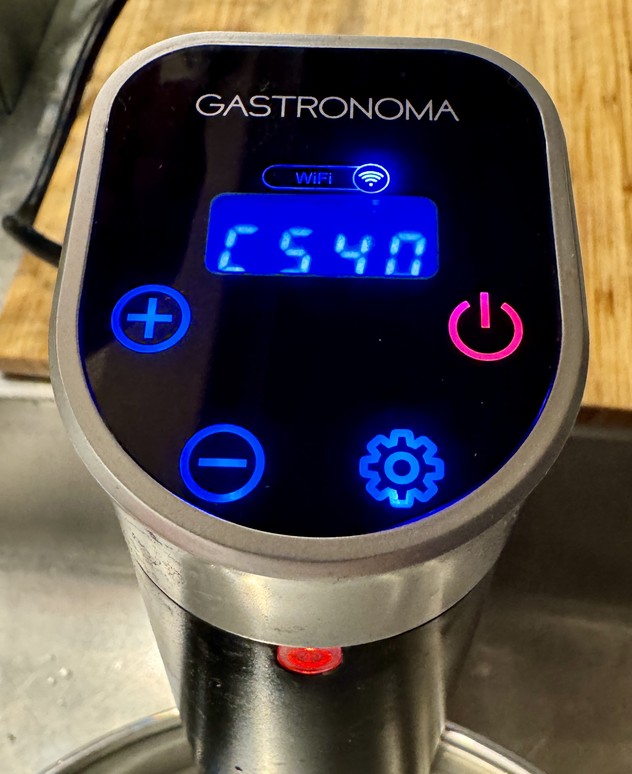 Gastronoman sirkulaattoria oli siis käytettävä käsin, mikä toimi varsin hyvin, kunhan ensin googlaa kullekin raaka-aineelle sopivan lämpötilan ja kypsennysajan. Lämpötilaa voi säätää puolen asteen tarkkuudella, mikä tuntuu vähän liioitellulta – ei kai kypsennys nyt muutenkaan kaadu yhden asteen eroon? Teholtaan kone on vertailun heikoimpia, ja lämpötilan saavuttamisessa Gastronoma olisi testin toiseksi hitain. Lämpötila kuitenkin pysyi tarkasti samana koko kypsennyksen ajan.