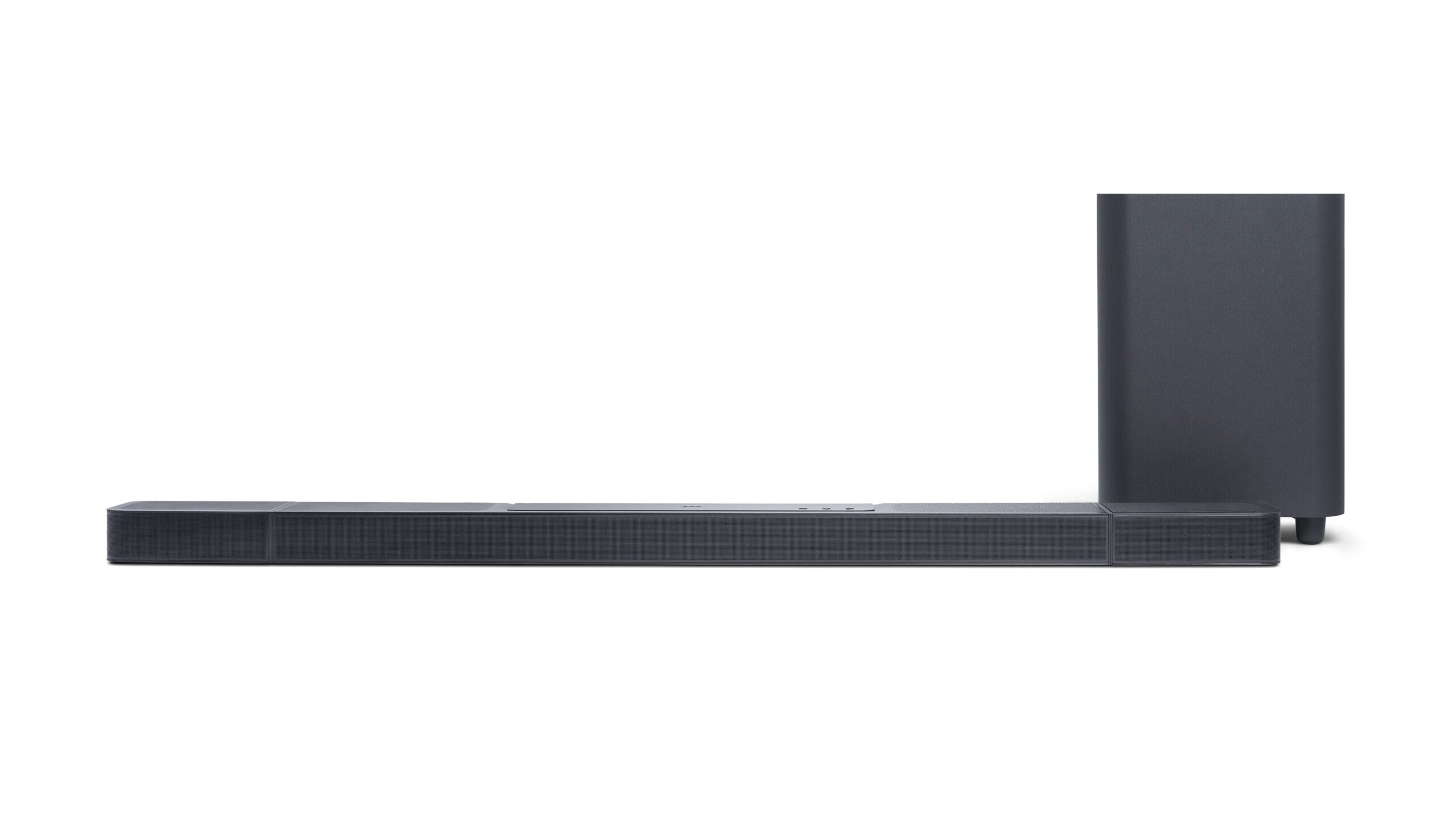 JBL:n valikoiman huippumalli ei ole mikään pikkujuttu: 134 cm leveä Bar 1300 on vielä isompi kuin Sonyn jättiläinen! Se on varustettu peräti 15 kaiutinelementillä edustaen 11.1.4-konfiguraatiota. Kokonaisuuteen kuuluu jopa täysikokoinen subwoofer 10-tuumaisine bassoelementteineen bassorefleksikaapissa.