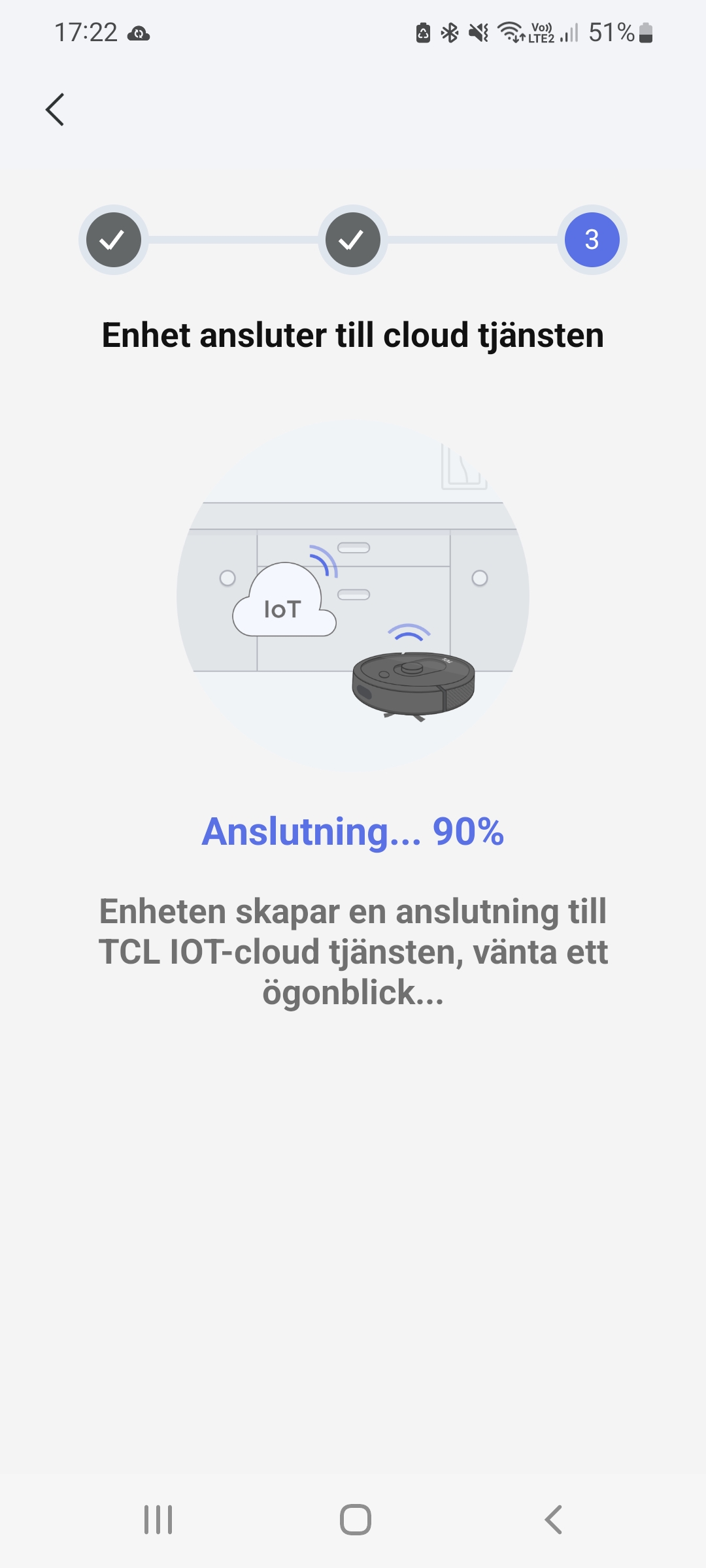 Noudatan TCL Home -sovelluksen käyttöönotto-opastusta prikulleen, mutta viime hetkellä, kun imurin on tarkoitus yhdistää pilvipalveluun, se lakkaa toimimasta. Sammutan koneen ja käynnistän uudelleen, mutta ei mitään.