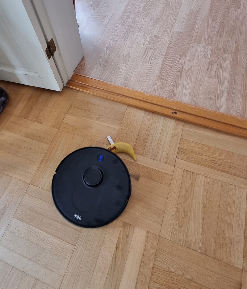 Testin jälkeen TCL Sweeva 6500 sai ohjelmistopäivityksen, jonka myötä se oppi imuroimaan matonkin – mikä on mielestäni erittäin tärkeää. Sovelluksen ongelmat eivät kuitenkaan korjaantunut, ja banaanilelu sai kyytiä päivityksen jälkeenkin.
