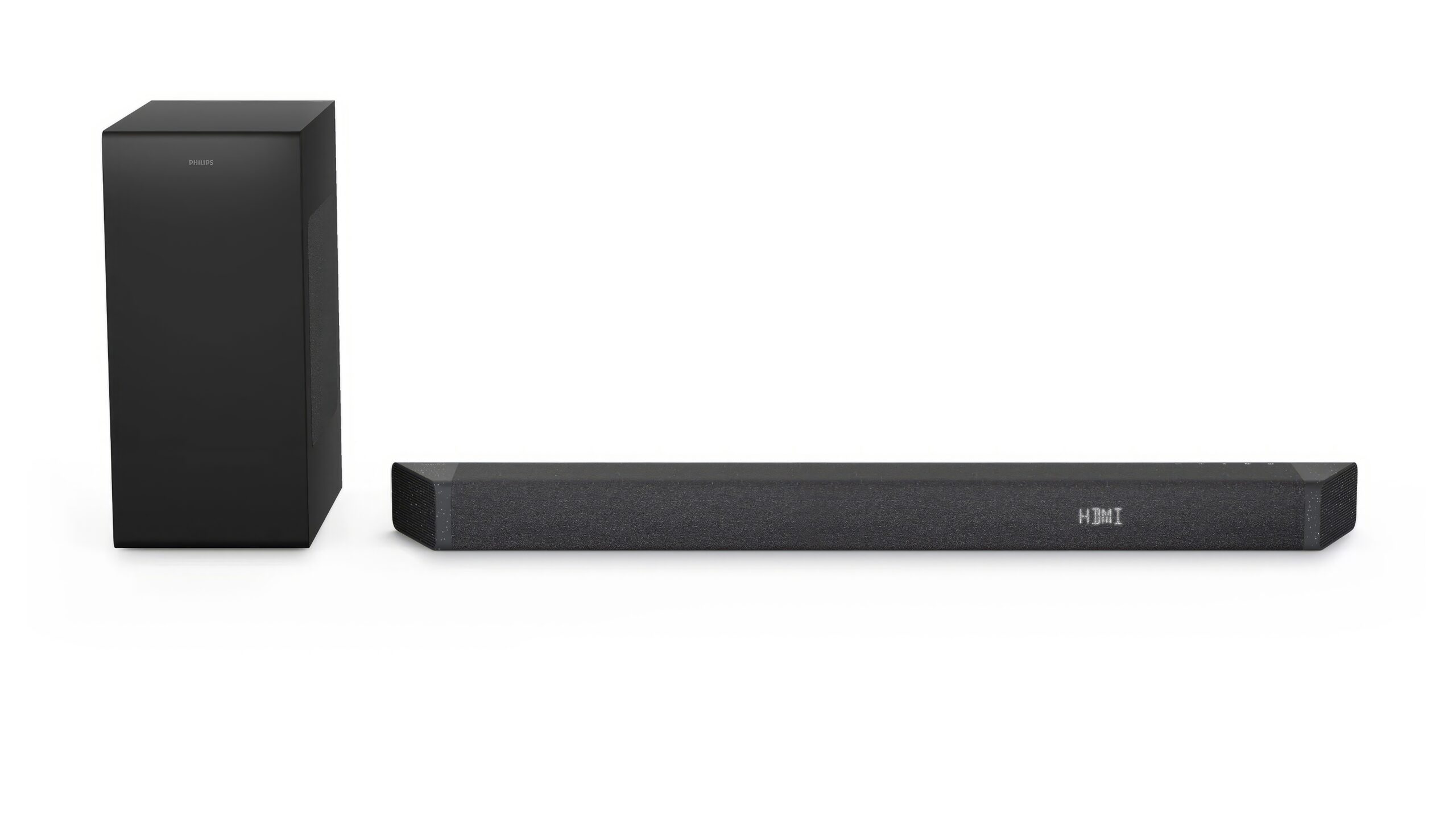 Philips TAB7908 on tyylikäs soundbar viistettyine päineen ja tummine kangaspäällyksineen. 5.1.2-konfiguraatio koostuu etu- ja korkeuskanavista, keskikanavasta sekä sivuille sijoitetuista diskanttielementeistä.